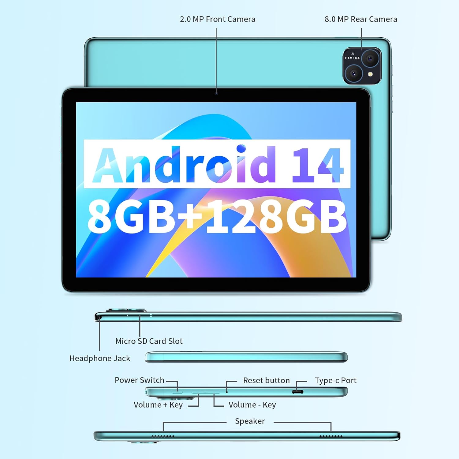 4 reviews for VASOUN 10 inch Tablet Android 13, 5Ghz WiFi Tablet Octa-Core,128GB, 8000mAh, Dual Camera, BT, FM, Metal Fashional Shape (Green)