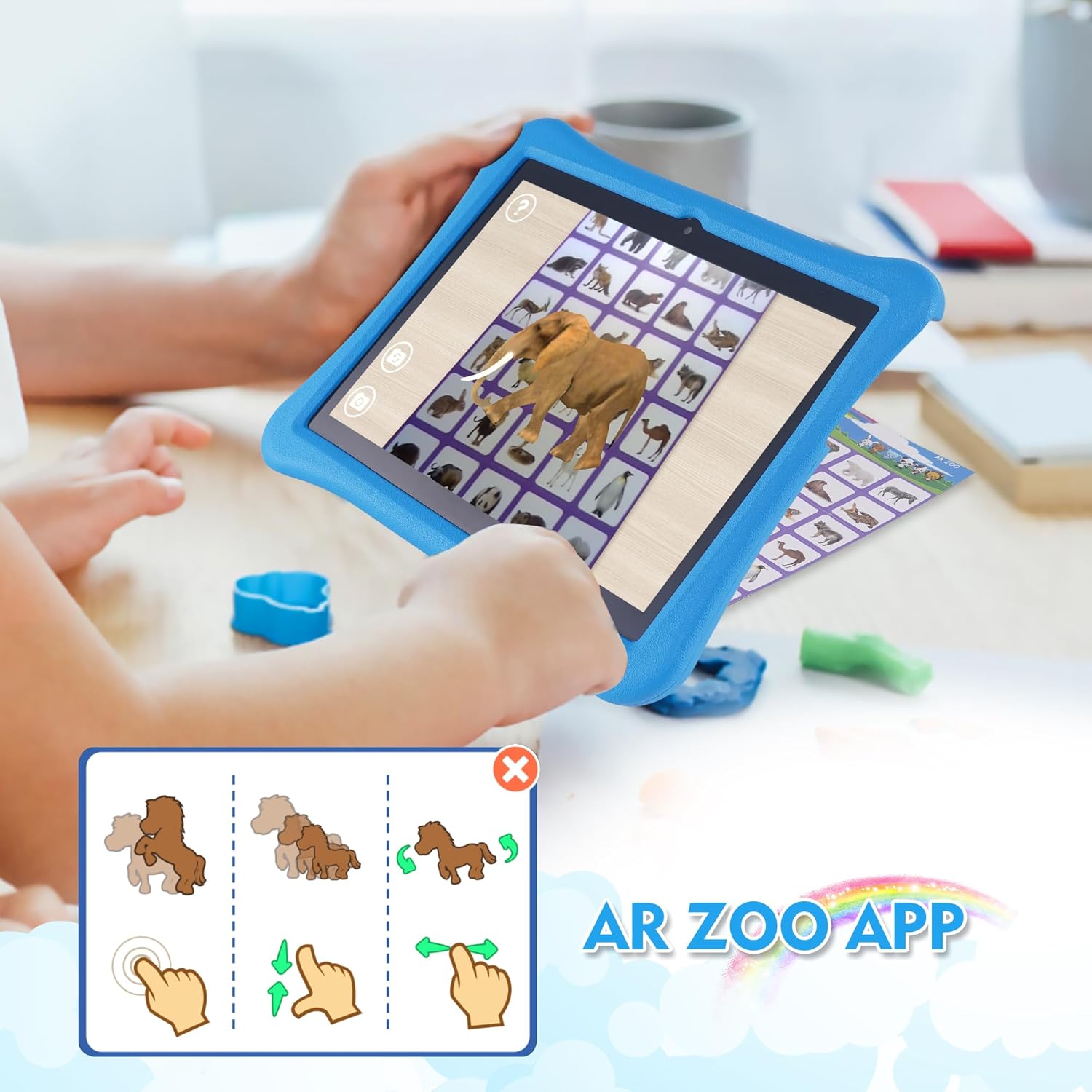 Veidoo Kids Tablet PC, 10 inch Android Tablet for Kids with 7GB(3+4 Expand) Ram 64GB ROM, EVA Shockproof Case, Eye Protection IPS Screen, Premium Parent Control Pre-Installed Educational APP(Blue)