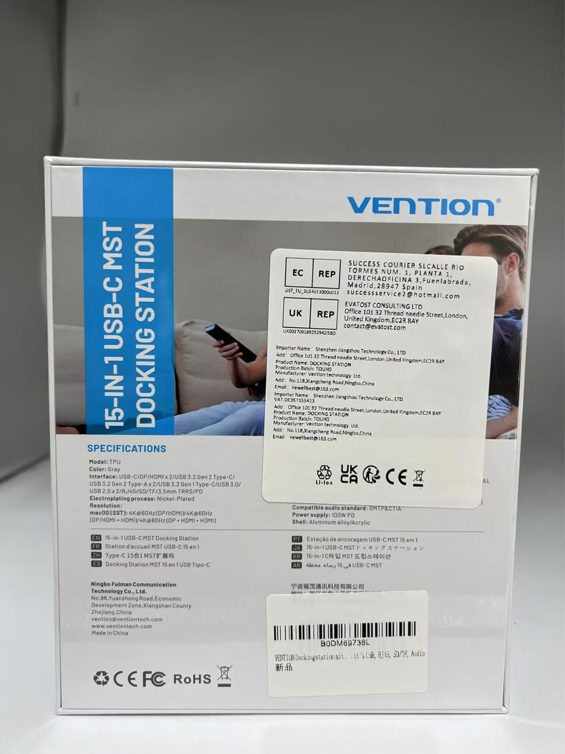 5 reviews for VENTION 15 in 1 USB-C Thunderbolt 4 Docking Station for Dual Monitor Setup,Triple Display,Compatible with Windows PCs,Dell,HP,with Dual 4K HDMI,DP,10Gbps USB,RJ45,100W Power Delivery, Audio,SD/TF