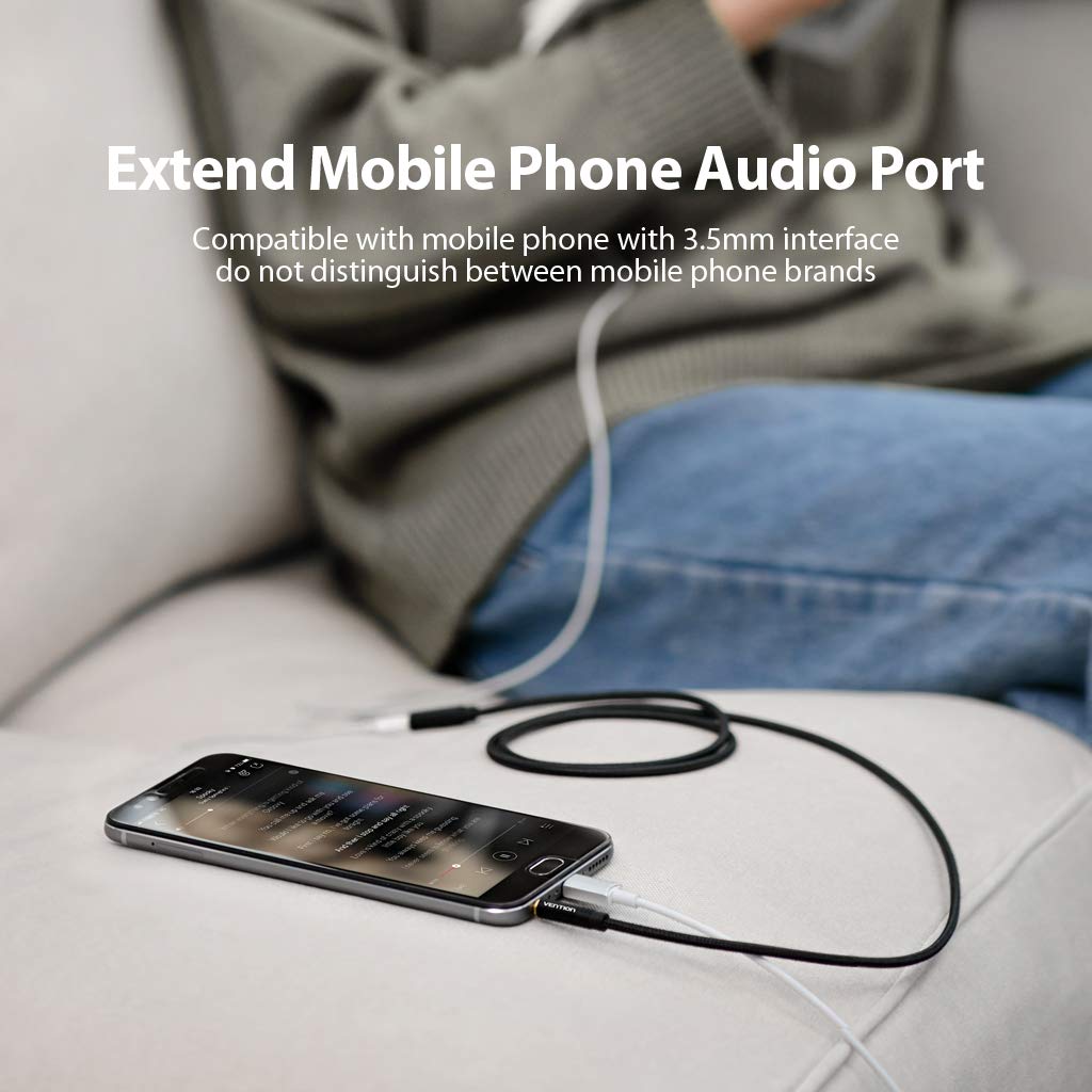 【Audio extension cable】VENTION 3.5mm audio jack extension cable has a 4-pin 3.5mm jack and plug, and supports the microphone function of the headset, while sending and receiving audio between your smart phone, tablet or other 3.5mm auxiliary port devices.