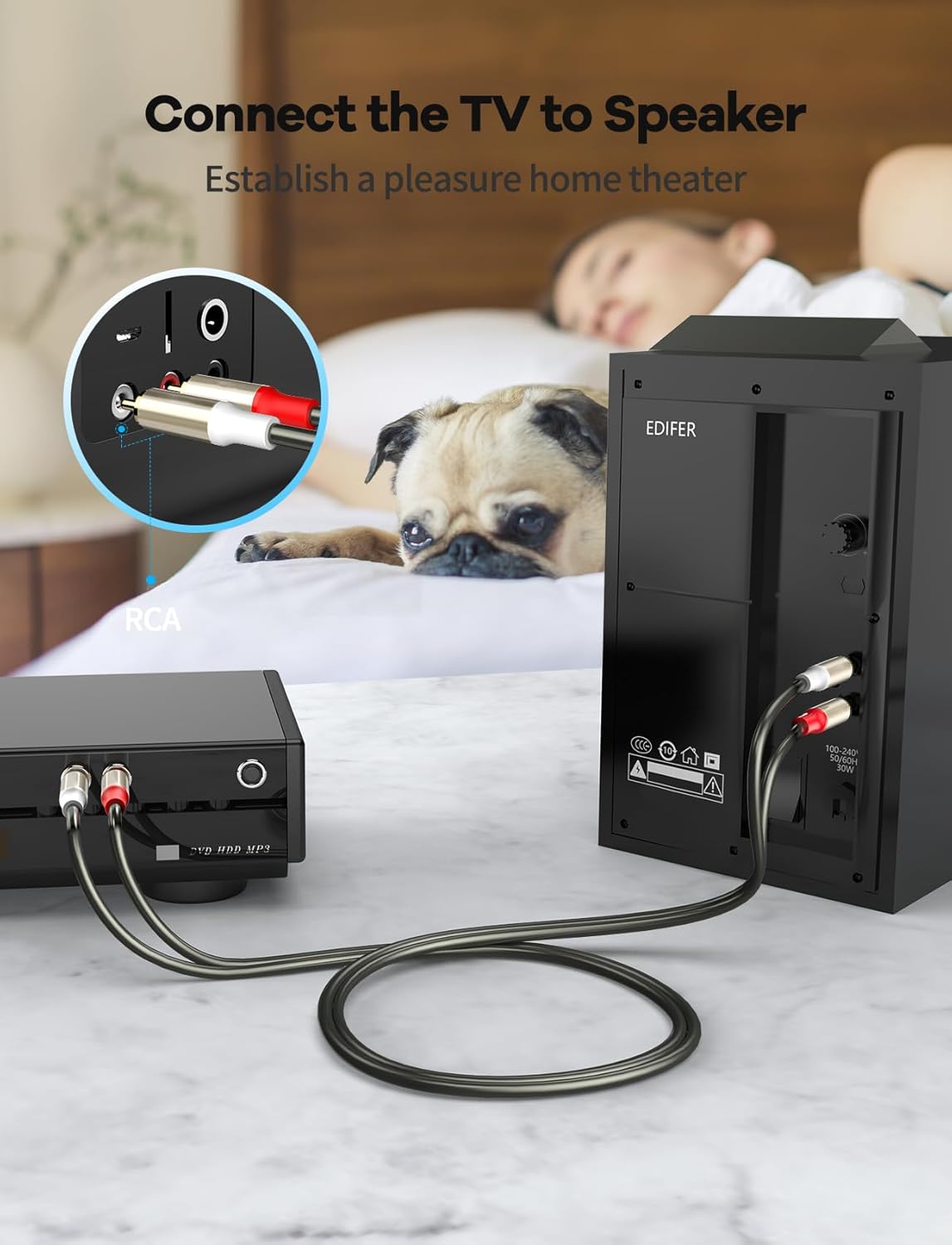 2RCA to 2RCA Widely Usage: This 2-Male connector allows you to use the RCA male to male audio cable with any standard stereo left/right output. RCA subwoofer cable perfect for home entertainment and audio systems, DVD player, subwoofer, digital satellite receivers, Dolby Digital receiver, etc.