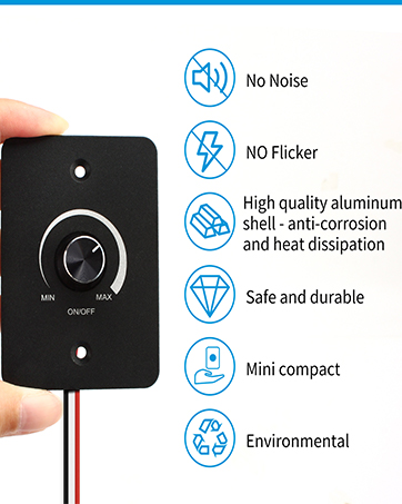 Warm Reminder: Dimmable led switch inline cannot be used for speed control of induction transformers, fans and motors. Please confirm your LED light is marked as “Dimming/dimmable”. Dimmer switch size: 81mm/3.19 inches, 33.4mm/1.31 inches, 22mm/0.86 inches (Excluding the knob itself)