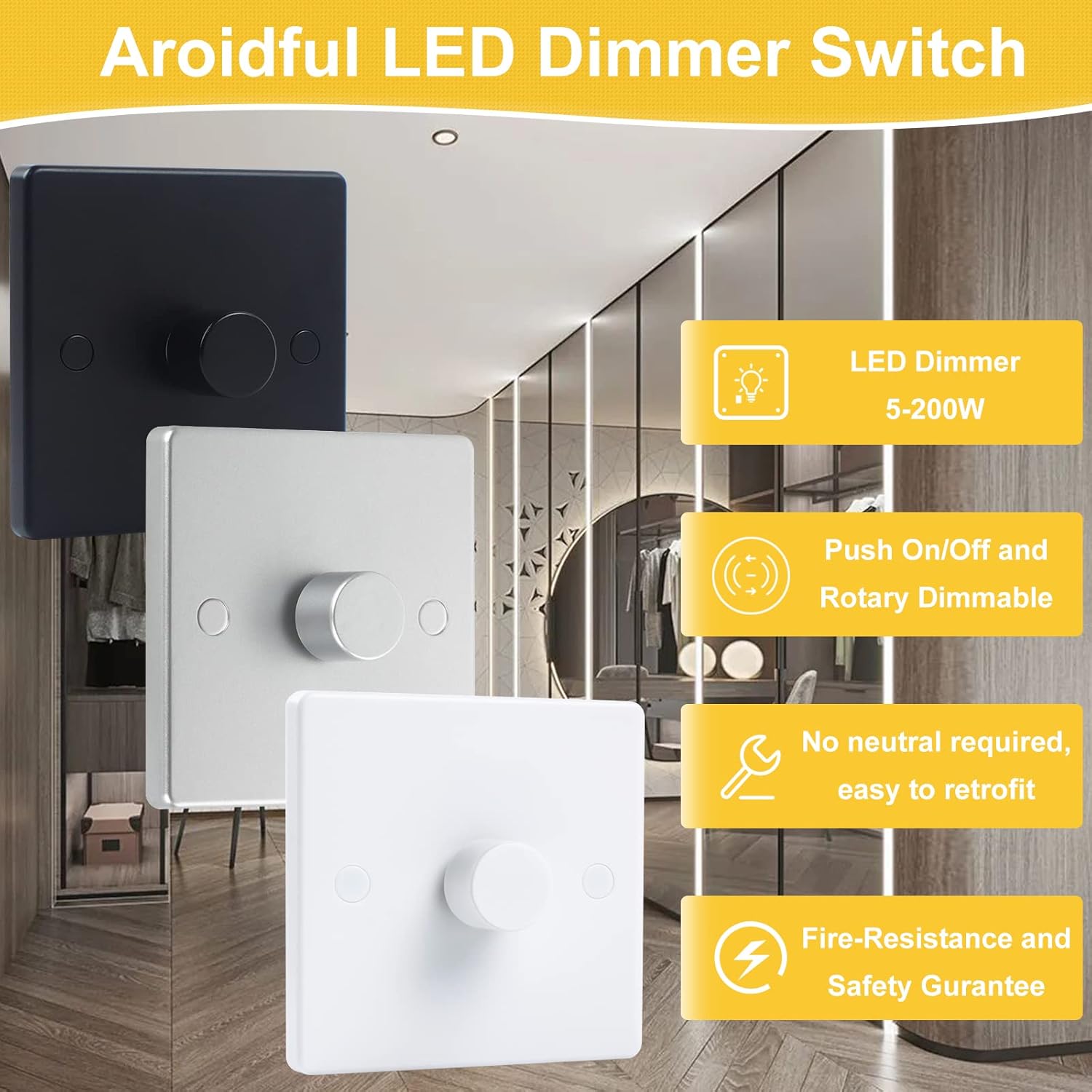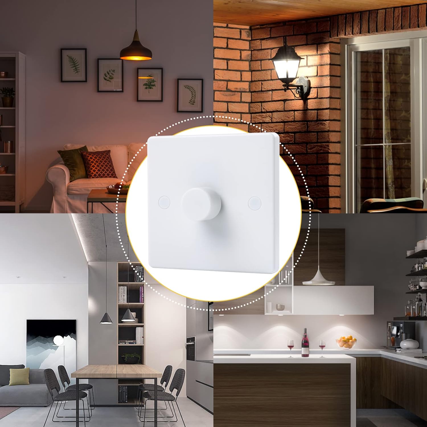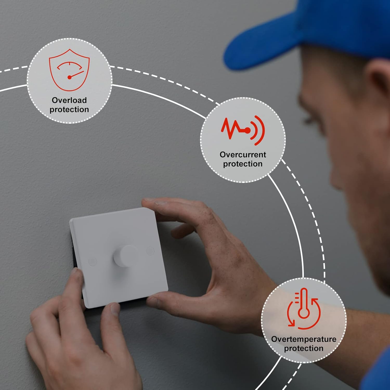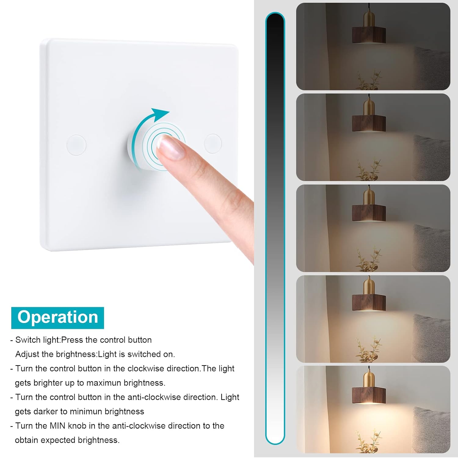 Technical Advantages: This LED dimmer switch features noise-free and flicker-free dimming functions, providing outstanding performance for dimmable bulbs. This dimmer switch is also equipped with overload, overcurrent and over-temperature protection functions, and complies with UKCA/CE safety standards
