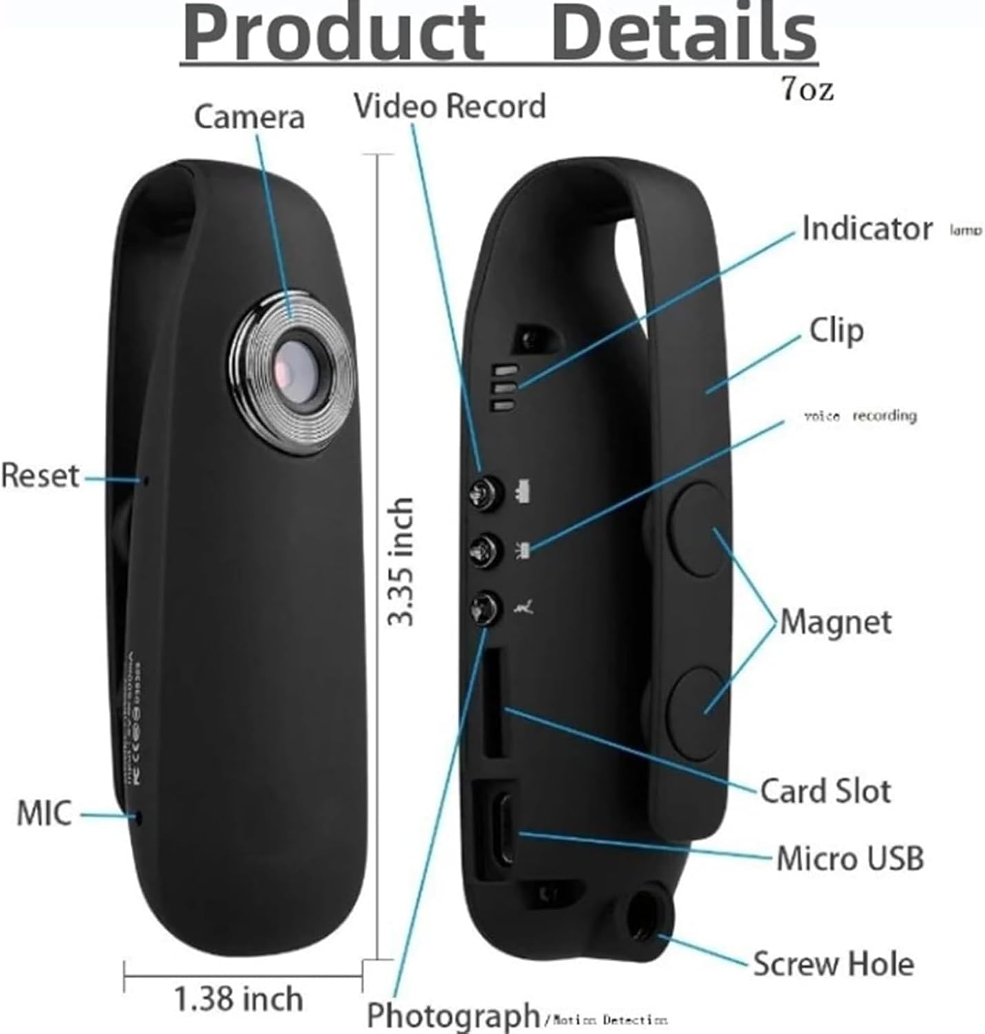 Be the first to review “Vomli Detect Clip Body Camera, 1080P Mini Camera Body Mounted Camera, with 32GB Memory Card,Loop Record & Motion Detection & Wearable Magnetic Clip (1 Pcs)”