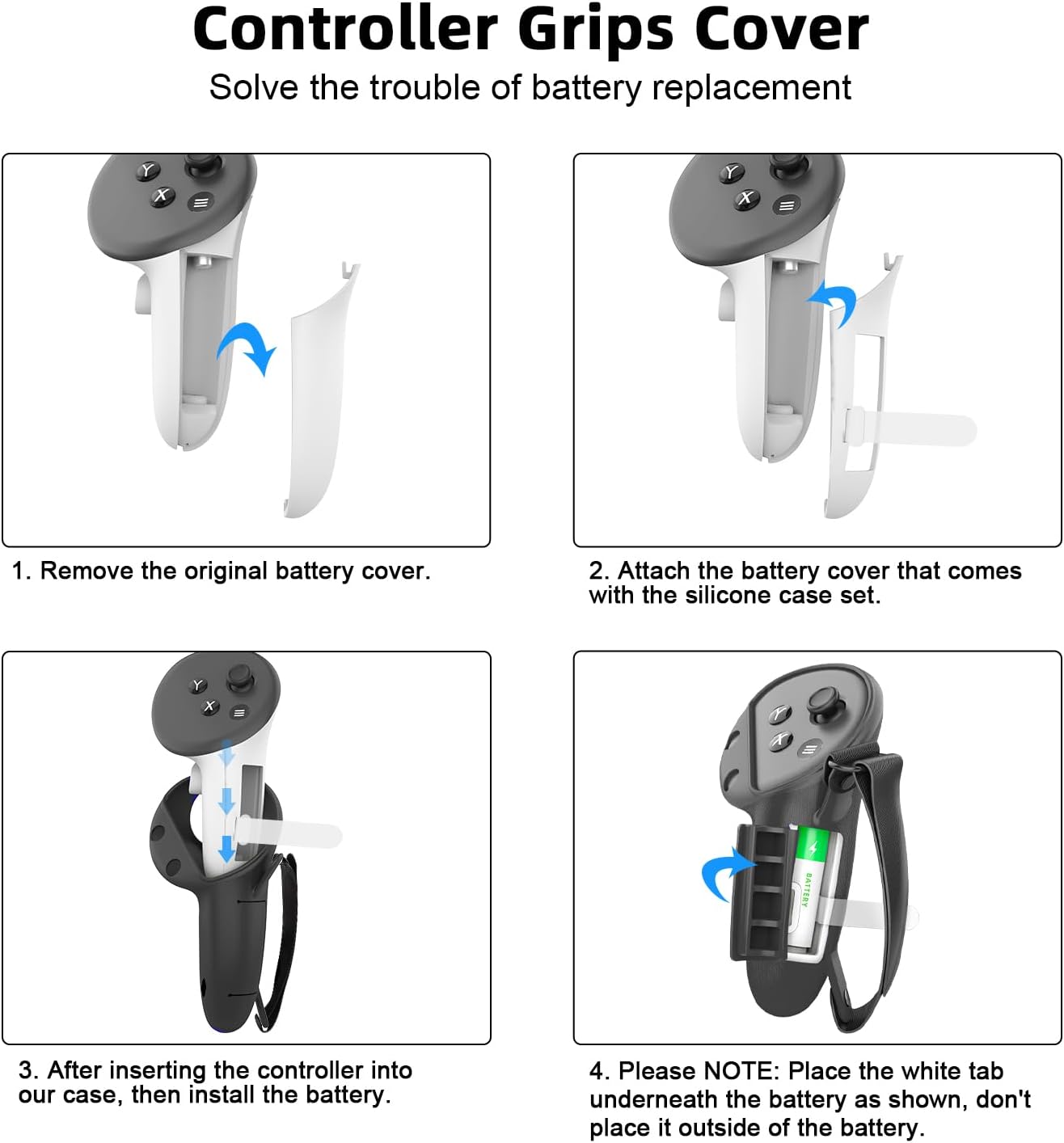 【Changing Batteries Becomes Easier】- Just install Tyasoleil controller grips opening cover after removing the battery cover for the first time, then you could easily replace the battery without removing the entire controller grips cover.