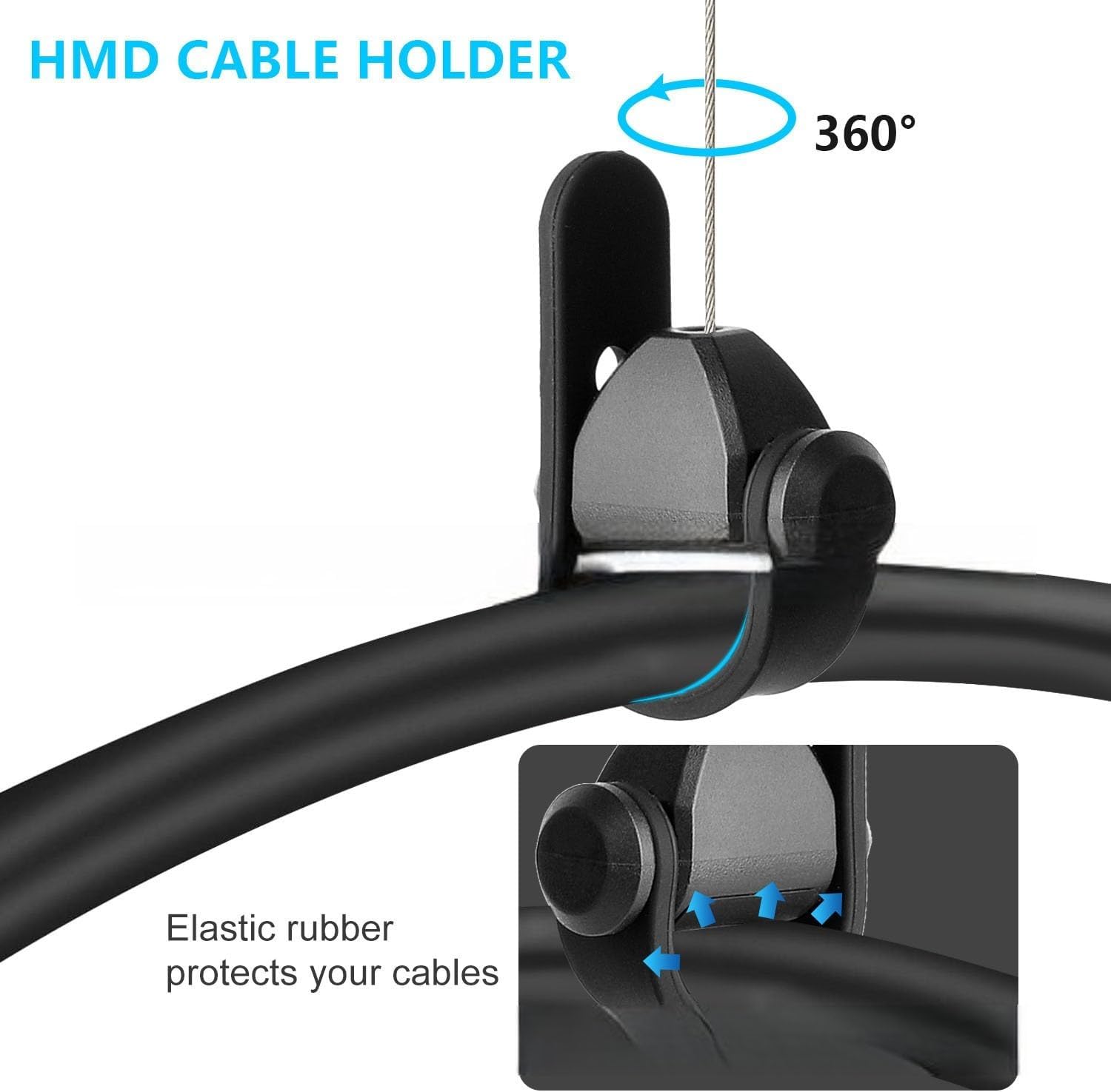 Retractable Cable System: Our VR headset cable management system features an innovative retractable design that keeps your cables organized and prevents tangling, creating a cleaner gaming area and allowing for more immersive virtual reality experiences.