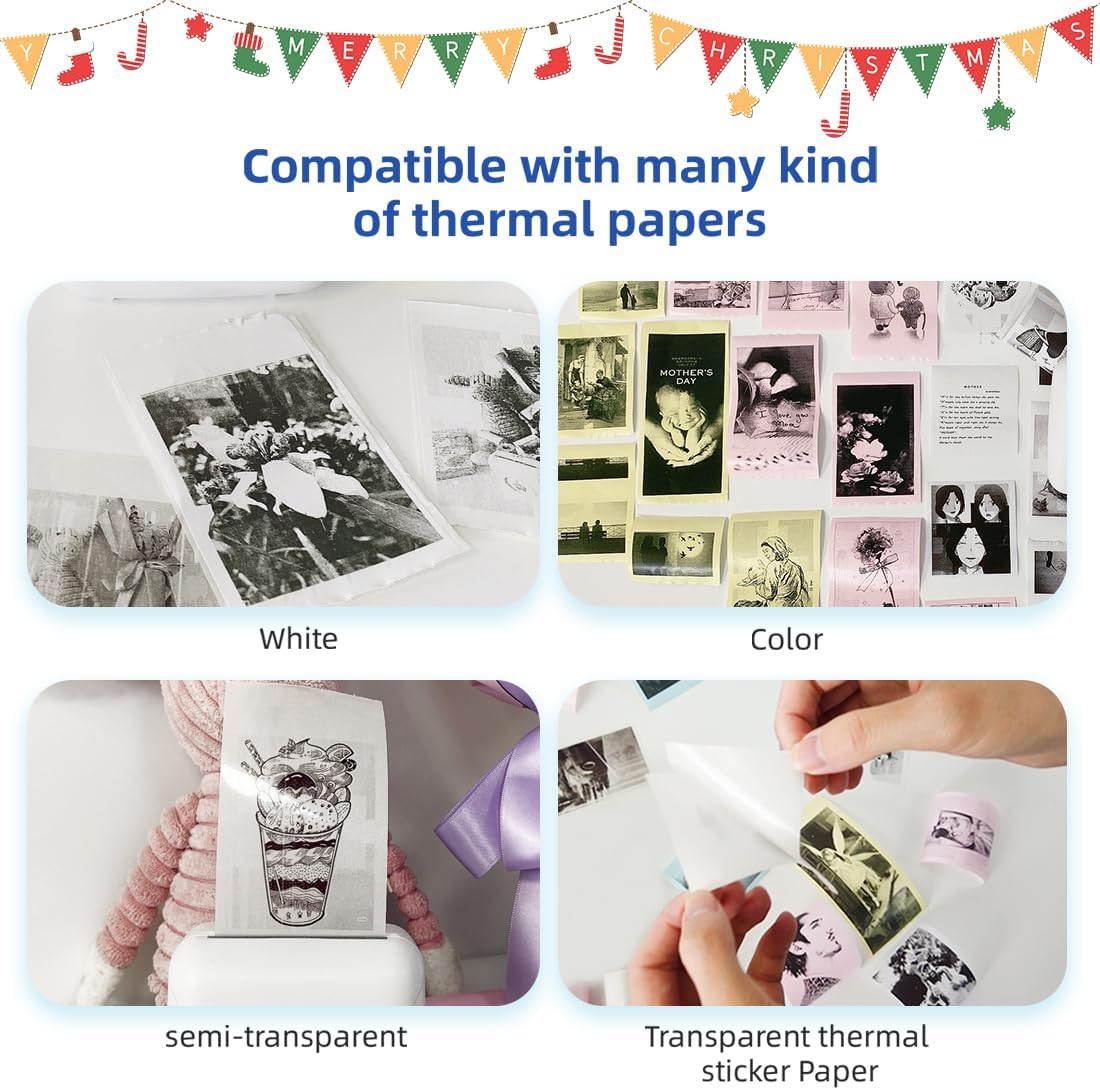 Mini Photo Printer: A mini sticker printer can be used as a photo printer, It is very portable, and it can record your memory during the trip. The portable photo printer supports a Bluetooth connection. As long as you have enough power, you can take it with you on your trip. Keep a record of your life at all times. Please note: The Photo printer only supports black and white.