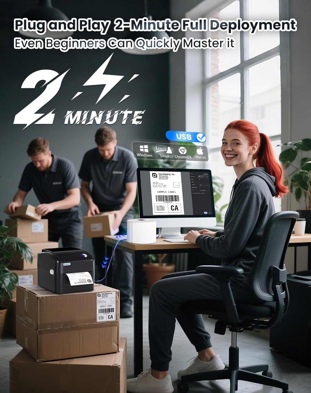 Universal USB Compatibility & 2-Min Setup Plug-and-play USB connectivity works seamlessly with Windows, macOS, Linux, and ChromeOS. Driver installs in 1 click – from unboxing to printing labels in 2 minutes, no tech skills needed!
