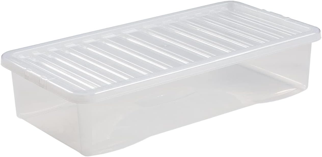 VTL® 43 Litre Underbed Clear Plastic Storage Boxes With Clear Lids Home Office Stackable Strong Quality – Set Of 2