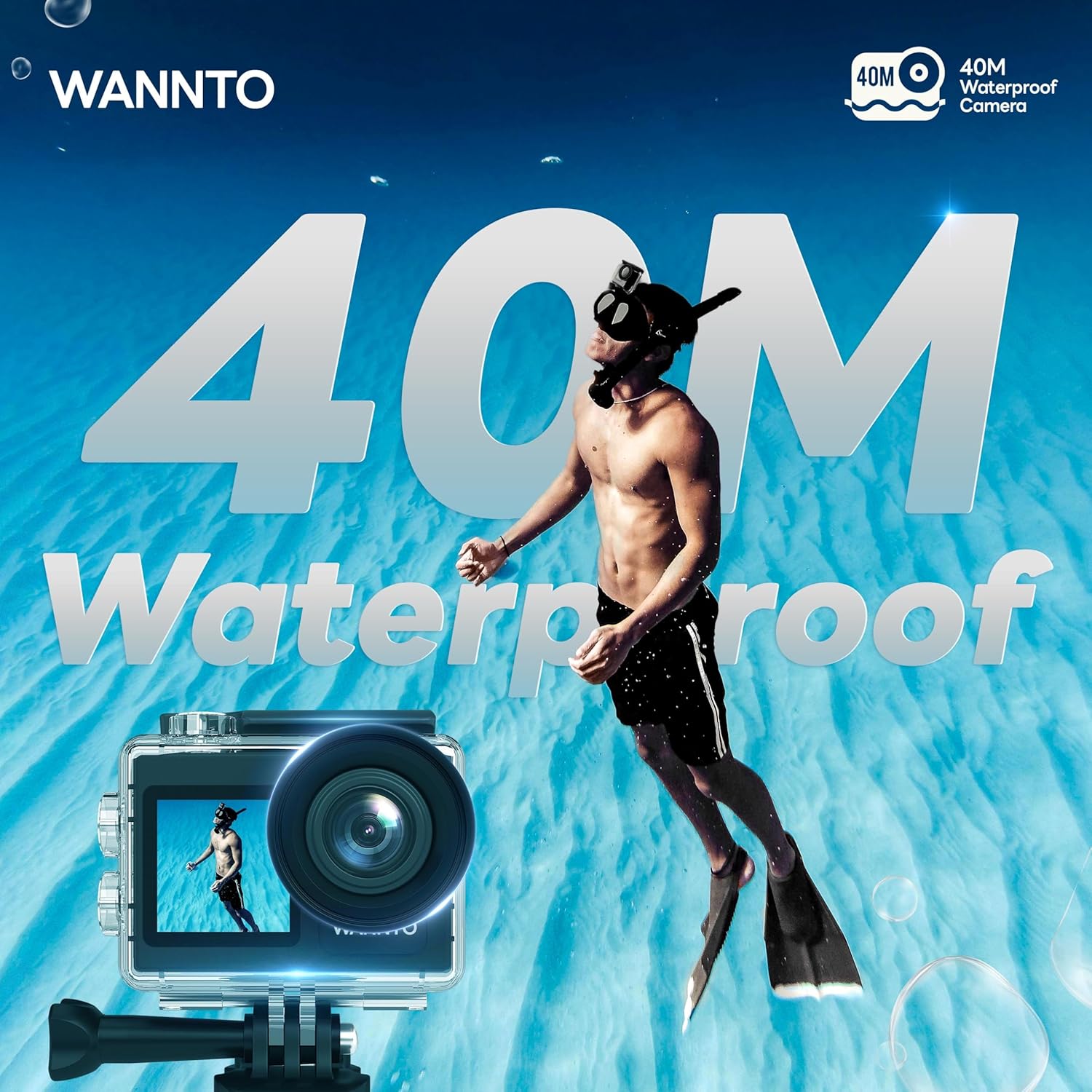 WANNTO Action Camera 5K 24MP Motion 5 Pro, WiFi EIS 170° Wide Angle Dual Screen 40M Waterproof Underwater Camera for Snorkeling, with External Microphone, Charger (With 64GB microSD Card)