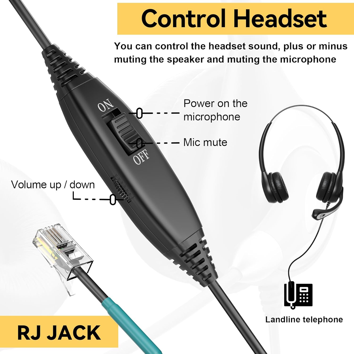 Professional Volume Control and Mute Switch built in. Easily adjust the headset volume up/down, mute/unmute the microphone. Easy to use, just plug the headset into the RJ jack on your phone and you’re ready to talk.