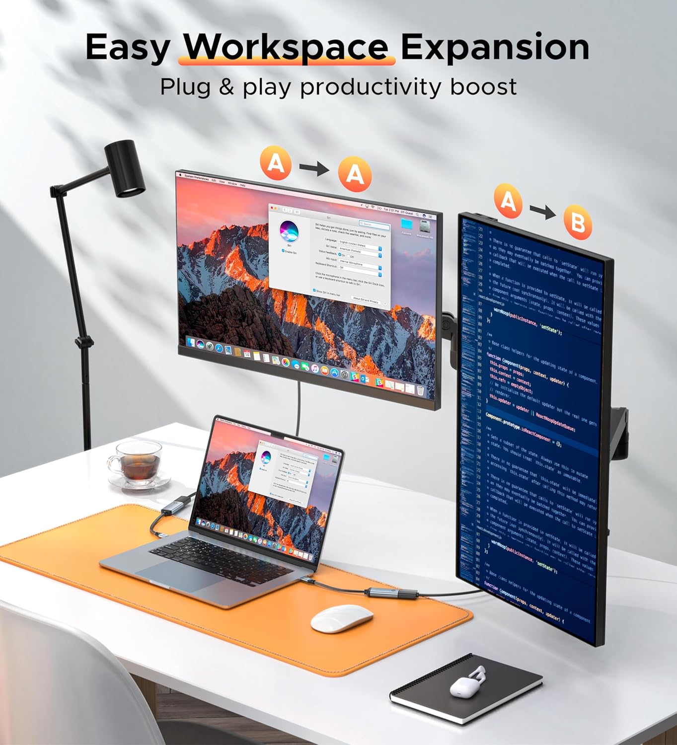Macbook Air Macbook Air 2016 / 2017 / 2018 / 2019 / 2020 / 2021 /2022 /2023 (*M1 devices released in 2020 and M2 MacBook Air only support up to one external monitor via USB C port) Macbook Pro Macbook Pro 2018 / 2019 / 2020 / 2021 /2022 /2023 (*M1 devices released in 2020 only support up to one external monitor via USB C port) Mac Mini Mac Mini 2018 / 2020 /2023 (*M1 devices released in 2020 and M2 only support up to one external monitor via USB C port) iPad iPad Pro 2018 / 2019 / 2020 / 2021 /2022 , iPad Air 4 / 5, iPad Mini 6 Other Apple Devices MacBook 2015 / 2016 / 2017, iMac 2017 / 2018 / 2019 / 2020, iMac Pro, Mac Pro 2019 Microsoft Surface Surface Book 2 / 3, Surface Go / Go 2 / Go 3, Surface Laptop 3 / 4 / 5/ SE / Go / Go 2 / studio / studio 2+, Surface Pro 7 / 7+ / 8 / 9 / X, Surface Studio 2, Surface Dock 2 – only works for Dock 2 rear ports Samsung Galaxy Fold Series / S22 Ultra / S22+ / S22 / S21 Ultra / S21+ / S21 / S20 Ultra / S20+ / S20 / S10+ / S10 / S10e / S9+ / S9 / S8+ / S8 / A90, Note 20 Ultra / 20 / 10+ / 10 / 9 / 8, Galaxy Tab S8 Ultra / S8+/ S8 / S7+ / S7 / S6 / S5e / S4, Galaxy Book OnePlus 10 Pro / 10 / 9 Pro / 9R / 9 /8 Pro / 8 / 7 Pro / 7 Valve Steam Deck Other Any device with a video output enabled USB C port (*DP Alt Mode), such as USB 3.1 Gen 2 (or up) devices, like Dell XPS 12 / 13 / 15 System Support Mainstream systems like Windows, macOS, Android, Linux, ChromeOS, SteamOS, etc. Function Support MacBook Clamshell Mode, Samsung DeX Mode *NOT Compatible Samsung Galaxy Flip series / Galaxy A series (except A90) / Galaxy Tab A series / Google Pixel series (*NOT support video output over USB-C ports)