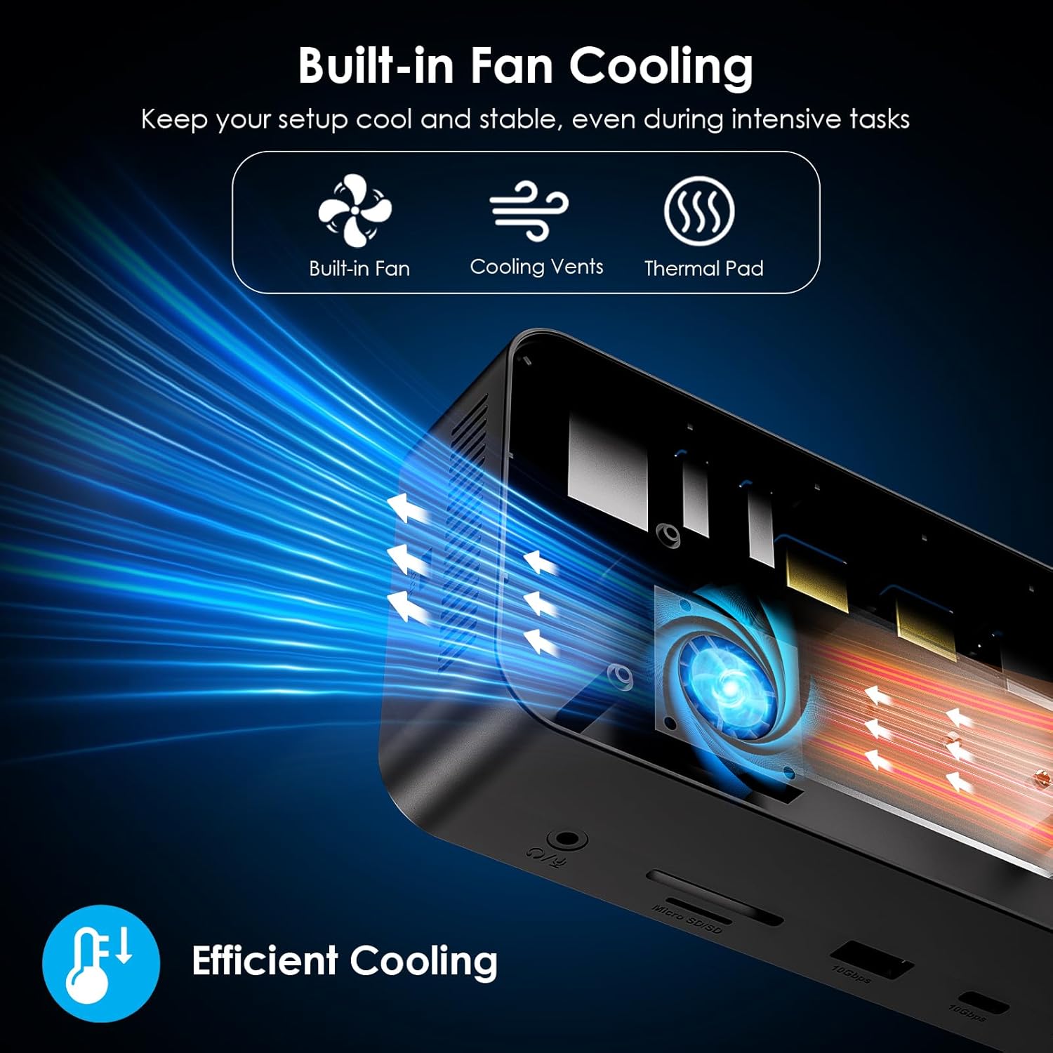 【Transfer Files In Seconds】Built-in M.2 SSD enclosure supports 10Gbps M.2 PCIe NVMe SSD and 6Gbps M.2 SATA. Includes one USB 3.2 gen2 USB-A and USB-C data port, both of which support up to 10Gbps, perfect for transferring large files in seconds. Additional 5Gbps USB-A ports are available for connecting peripherals like keyboards, mice, or printers. SD/Micro SD card slots support simultaneous reading at a speed of up to 104 MB/s. And the Gigabit RJ45 Ethernet port helps to enjoy reliable and fast-wired internet connectivity.