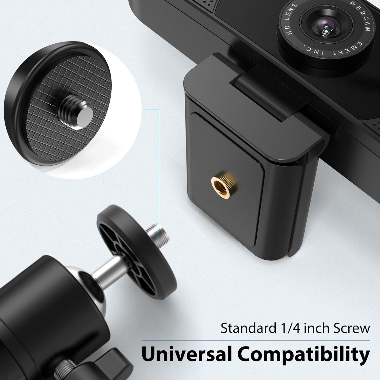 A standard 1/4 inch screw ensures universal compatibility, compatible with webcams, cellphones, mirrorless cameras, and the GoPro.