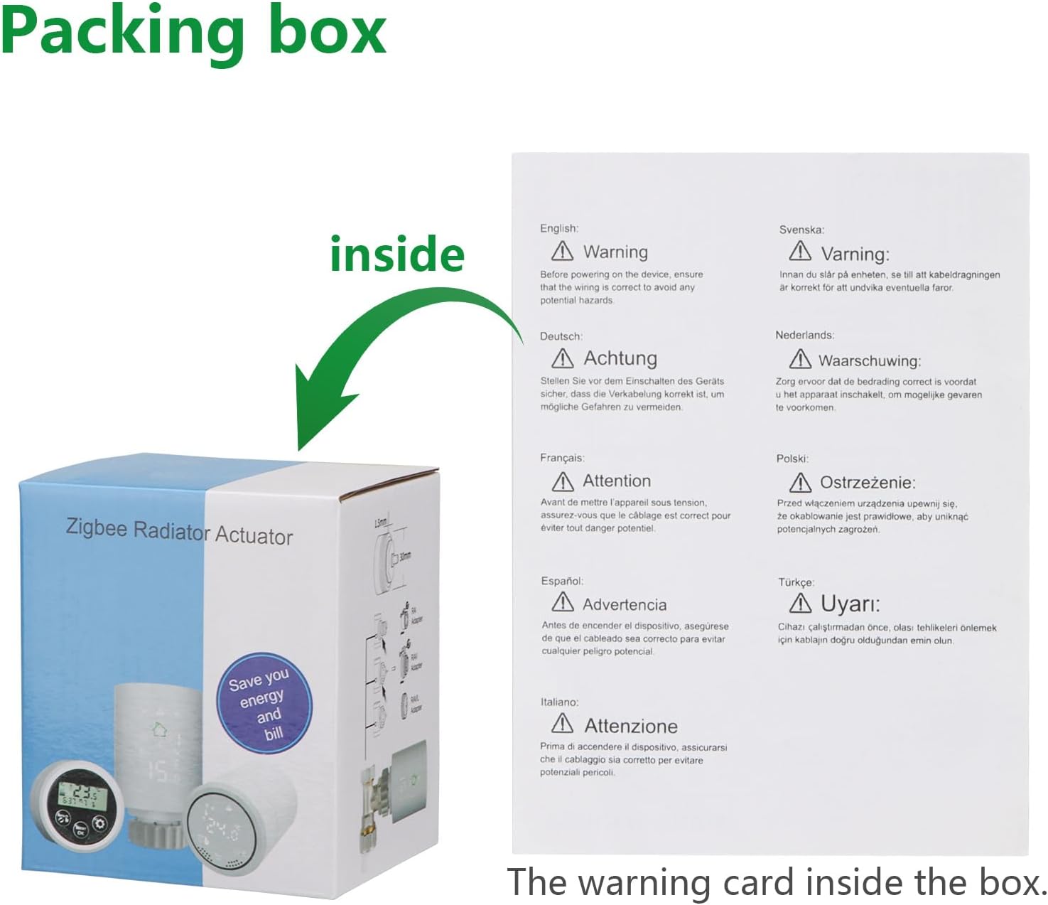 This wireless radiator thermostat supports Amazon Alexa and Google Assistant. Through the Tuya App, you can configure and use commands and related operations. You can open and close the thermostatic valve by simply issuing voice commands