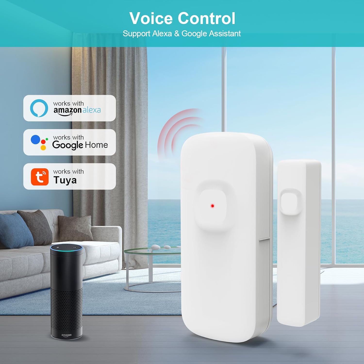 WiFi Door Sensor Detector Smart,Wireless Window Sensor Smart Home Automation WiFi Magnetic Door Window Safety Automatic Open Close Sensor Alarm for Home Security,No Hub Required