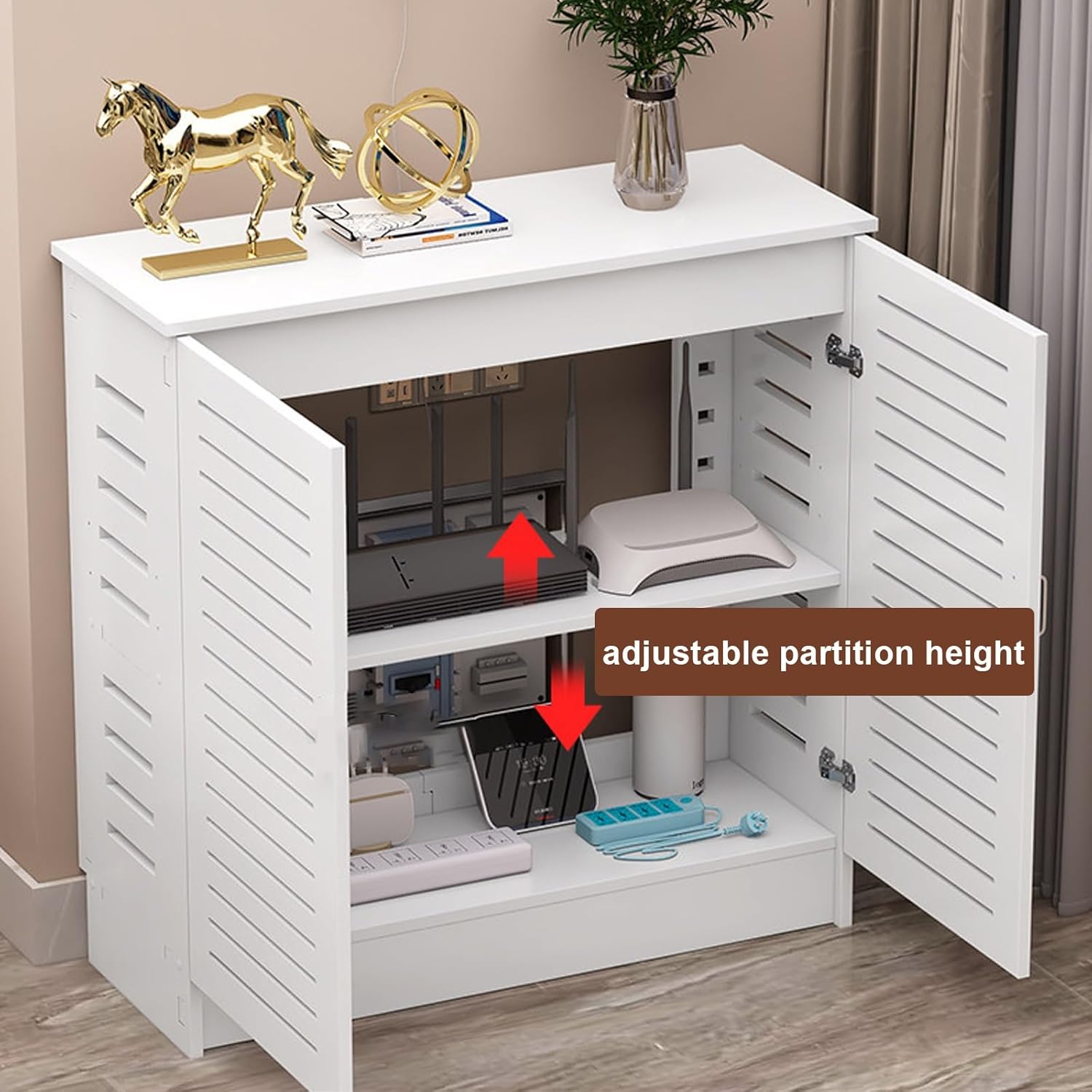 【Adjustable Shelves】: With free adjustment of interlayer spacing, this wifi router storage cabinet easily adapts to different device sizes, from routers and optical modems to power strips and multimedia accessories.