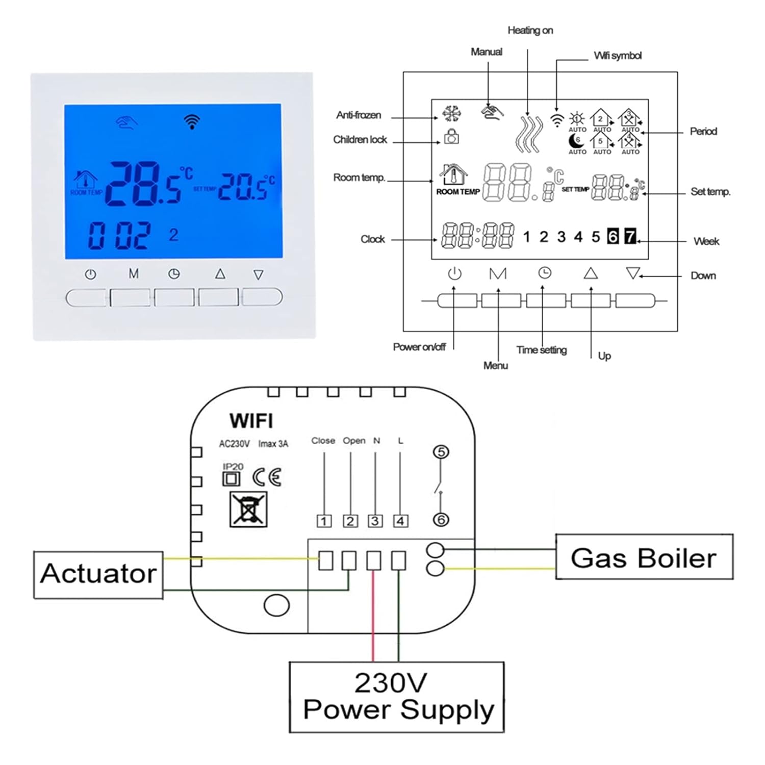 Usage: 313 wifi series thermostat could be used to control both gas boiler and thermal actuator. This thermostat will fit you if your house uses water heating system.