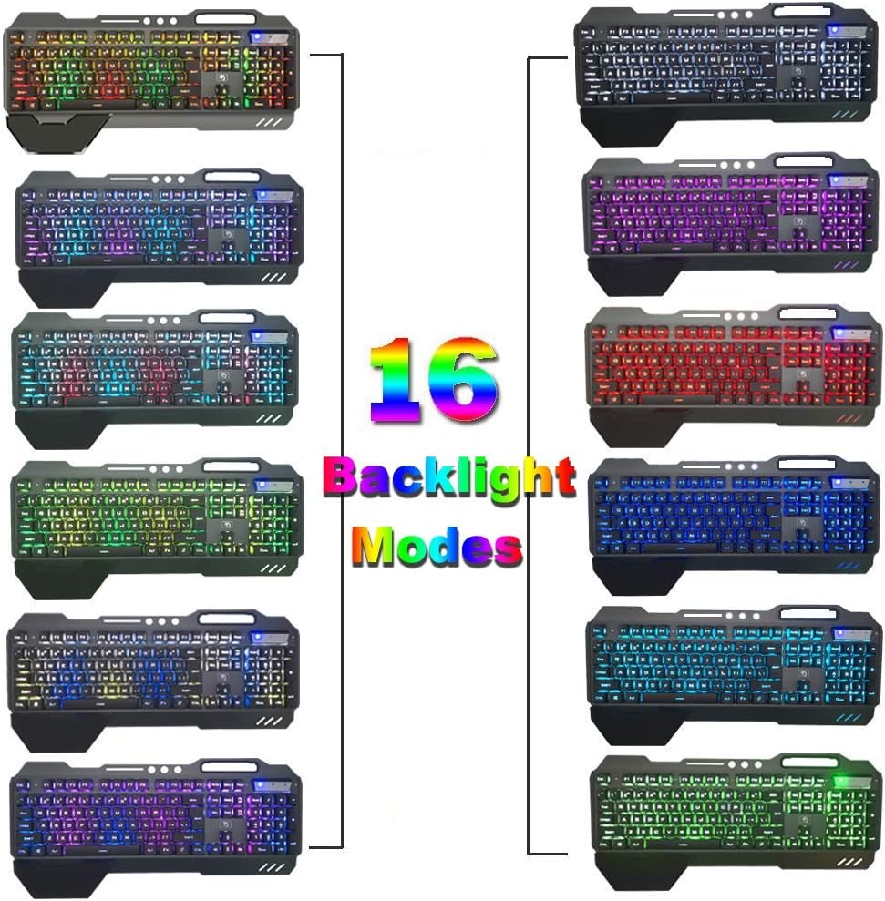 Wired Gaming Keyboard and Mouse Sets RGB LED Backlit Metal Plate 104 Keys Hand rest Usb Gamer Light Up Keyboard 2400DPI Optical 6 Buttons PC Game Mouse + Mousepad Compatible with Laptop Computer