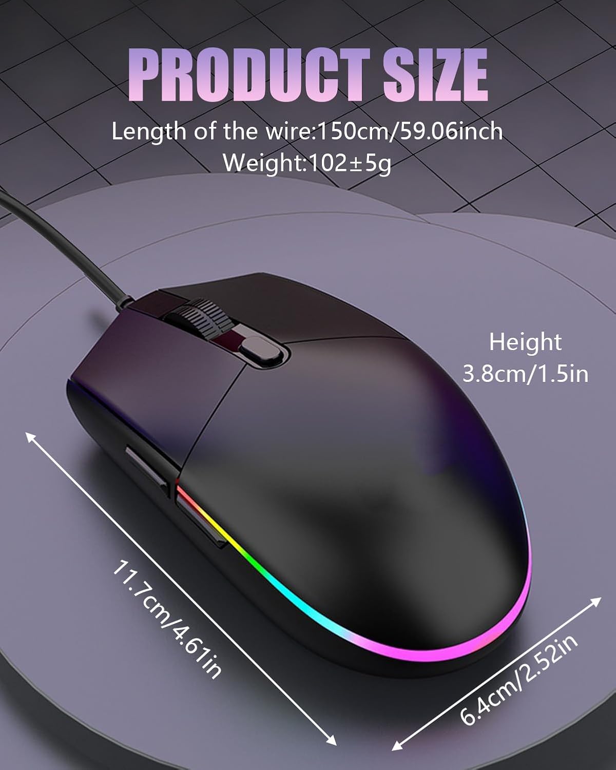 Stable Wired Connection——The RGB wired gaming mouse provides a reliable connection experience, ideal for devices such as PCs, laptops, and desktops. It offers lower latency and an interference-free performance compared to wireless mice. Users won’t have to worry about battery depletion or signal disruptions, ensuring each action is swiftly executed. Especially in office environments or during extended use, a wired mouse for laptop offers enhanced stability and smoothness, making it perfect for long working hours or gaming sessions without the limitations of battery life or wireless signal issues.