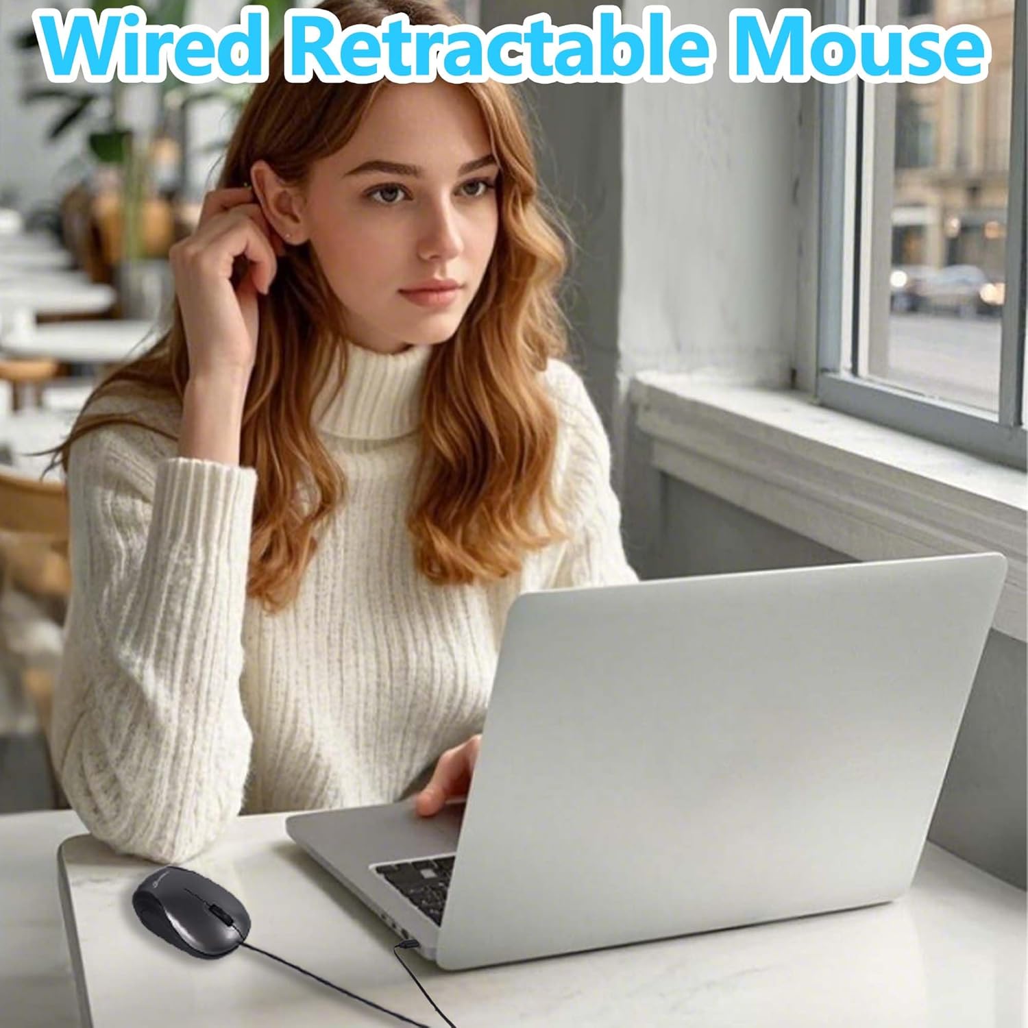 Retractable Cable Design This Type-C wired mouse features a retractable cable housing that saves space and prevents tangles. The flexible, easy-to-use cable retracts with a simple pull, allowing you to adjust the length to your needs. It’s perfect for travel laptops or gaming devices (it quickly retracts for easy portability).
