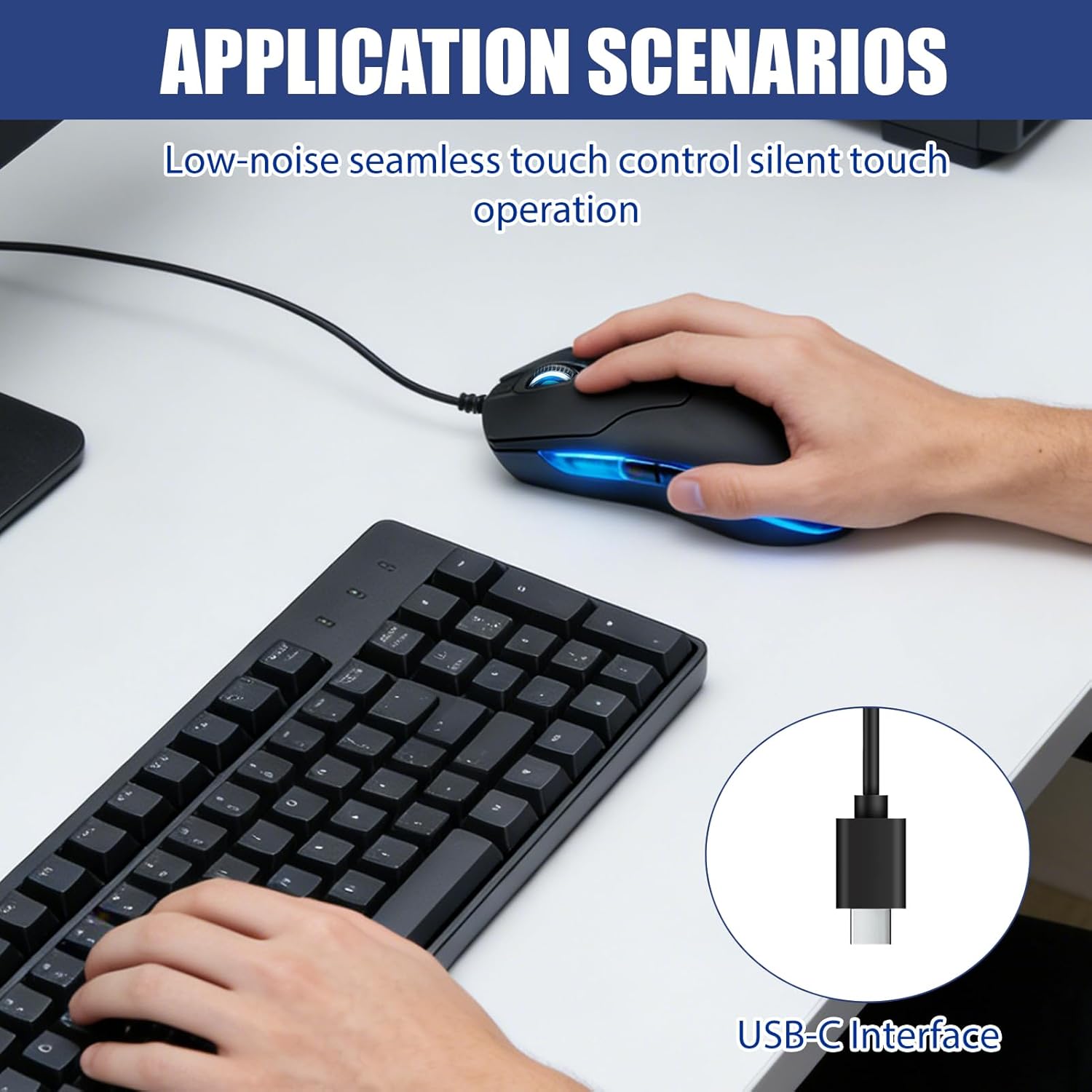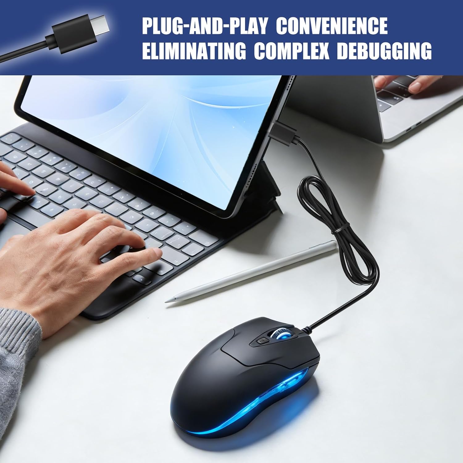 Wide Compatibility Across Devices & Systems: This usbc mouse works seamlessly with USB‑C laptops, tablets, and desktops, and is fully compatible with MacBook iPad Pro Dell XPS Surface and Samsung Galaxy Book. It functions perfectly as a usbc wired mouse for macbook and is also a capable gaming mouse wired for quick tasks. Fully compatible with macOS, iOS, Windows 10/11, and Chrome OS, it’s a versatile usb c mouse ready for work and everyday use.
