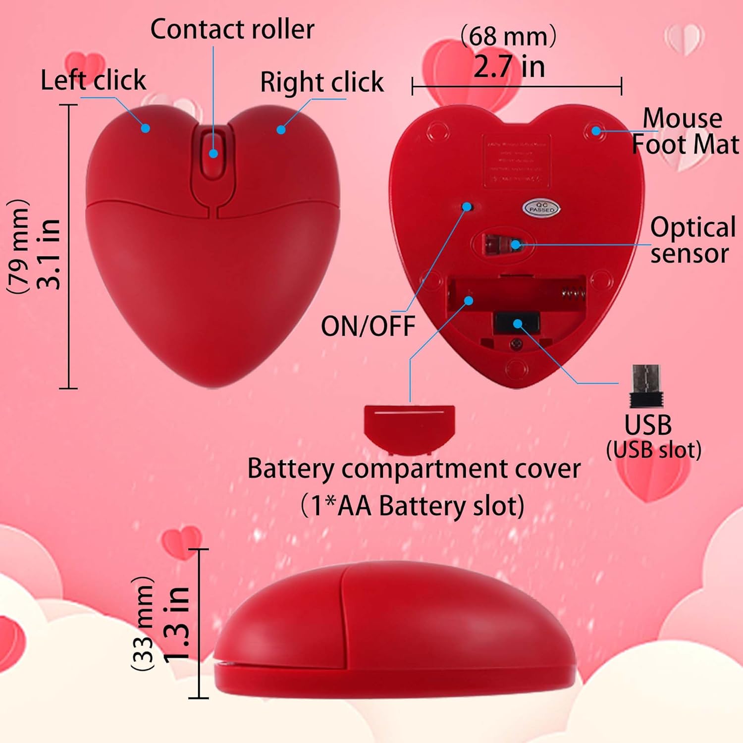 A beautiful gift:This lightweight and portable cordless optical mouse features a unique heart-shaped design, making it a delightful gift. Whether it’s a holiday surprise or a birthday gift, it reflects meticulous attention to detail and quality. It’s the perfect gift for children, family, friends, colleagues, men, women, or even mothers.
