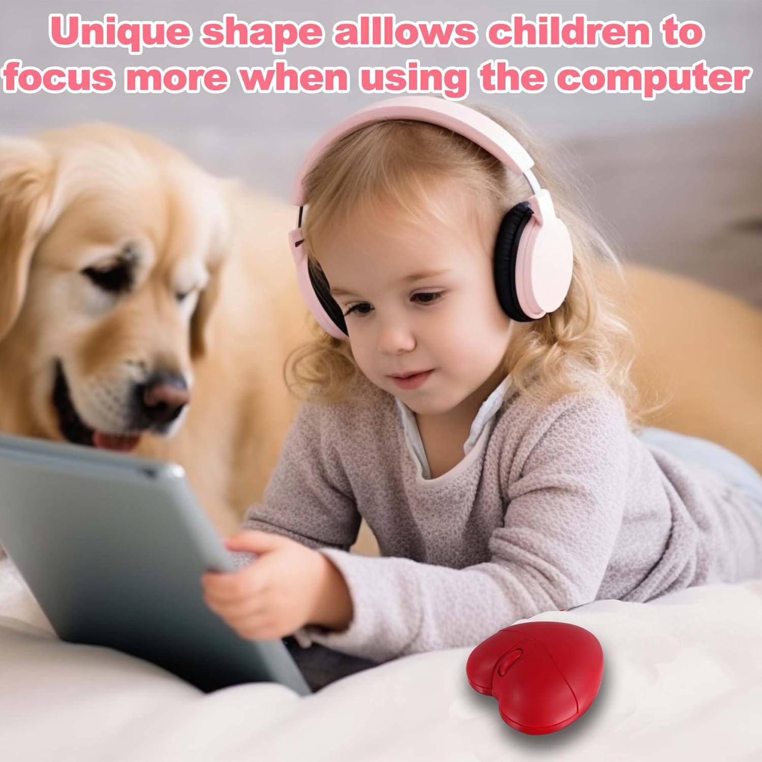 Wireless Bluetooth Mouse Cute Heart Shaped Bluetooth + 2.4GHz Dual-mode Lightweight Portable Silent Mice with Precise Tracking for Laptop Computer Tablet Mac MacBook Desktop Kids Girls Women Gift(Red)
