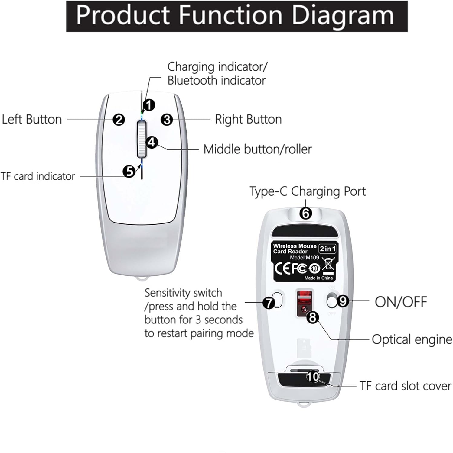 Widely Compatible: When the wireless silent mouse is used as a card reader, it supports all devices with USB interfaces. When used as a mini Bluetooth mouse, it supports Windows, MacOS, Linux, IOS, Android systems, devices with Bluetooth, and the latest systems.
