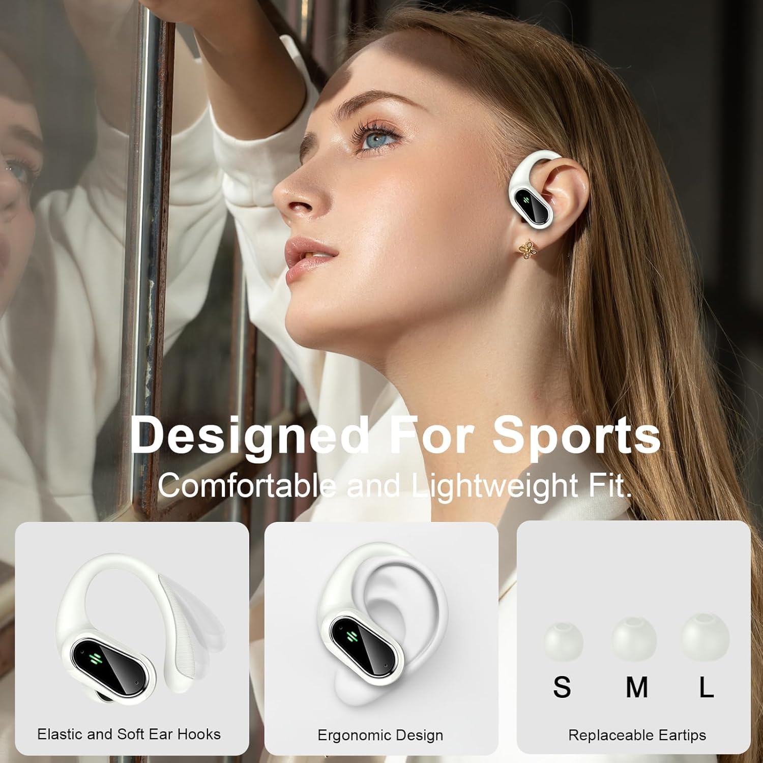 13 reviews for Wireless Earbuds, Bluetooth 5.3 Sport Headphones HiFi Stereo Noise Cancelling Earbuds with HD Mic, 50H Wireless Headphones Dual LED, In Ear Ear Buds with EarHooks, IP7 Bluetooth Earphones, White