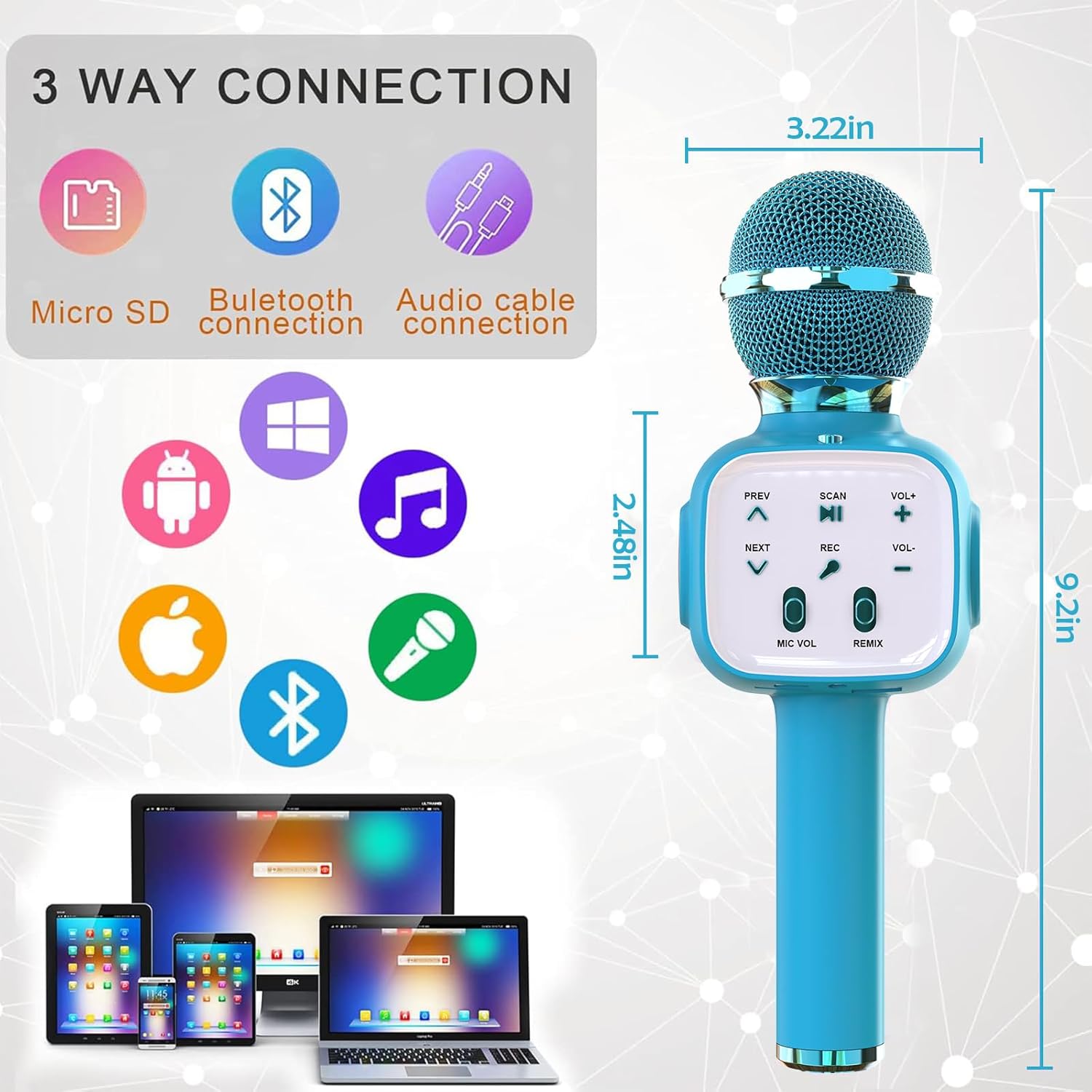 10 reviews for Wireless Karaoke Mic, Bluetooth Microphone for Boys, Girls & Adults, LED Lights, Android/IOS Smartphone Mic for Party, Singing, Recording (Blue)
