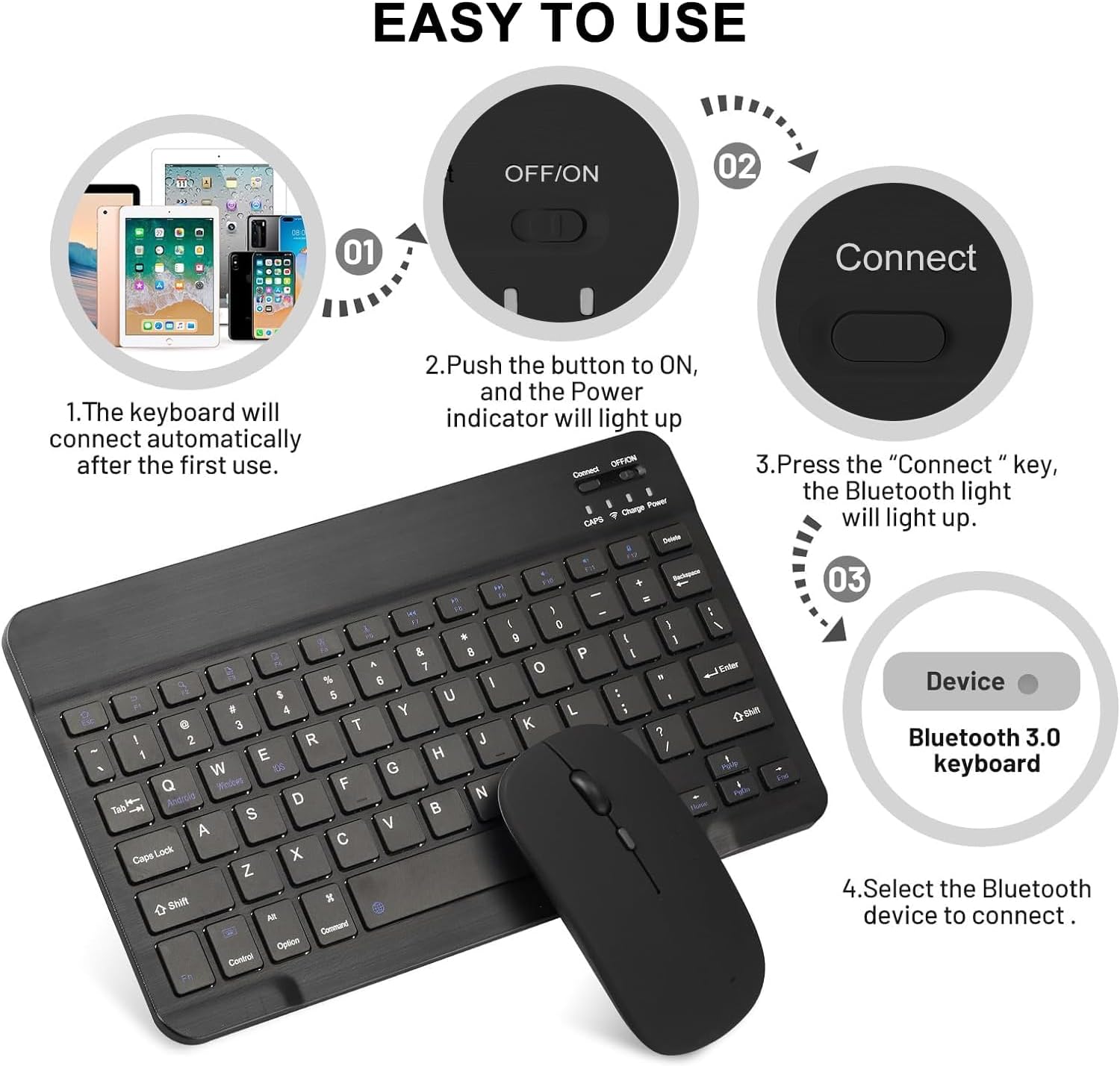 Wireless Keyboard and Mouse Set, 10” Ultra Slim Bluetooth Keyboard and Mouse, Rechargeable for IOS, Mac, IPad, Windows and Android 3.0 and above OS