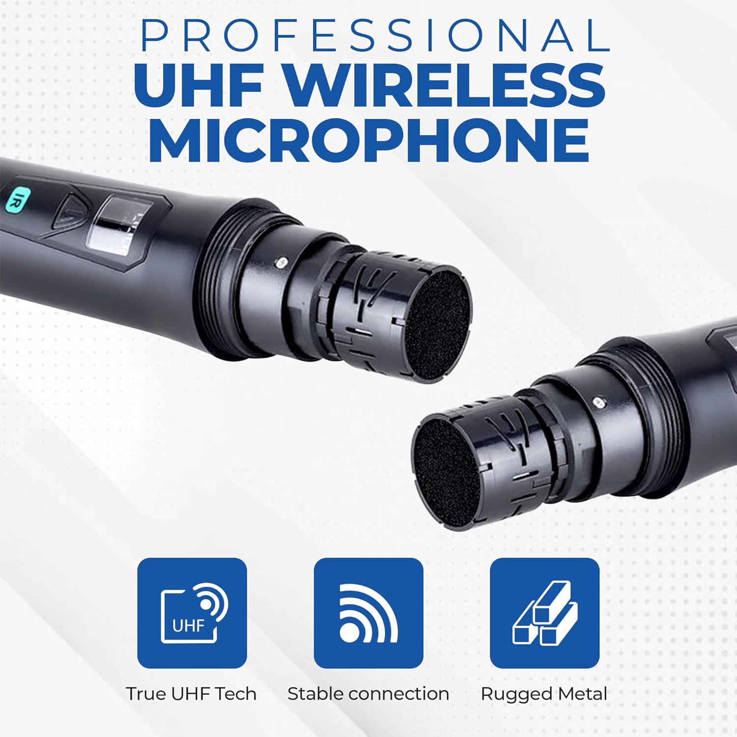 STURDY AND DURABLE: Our dual channel UHF wireless handheld microphone system set has a steel mesh grille that is particularly resistant to impact and corrosion. Professional receiver high gain antennas and an LED light-up display that will show the channel and frequency number, and separate volume control for each microphone enabling precise vocal balancing.