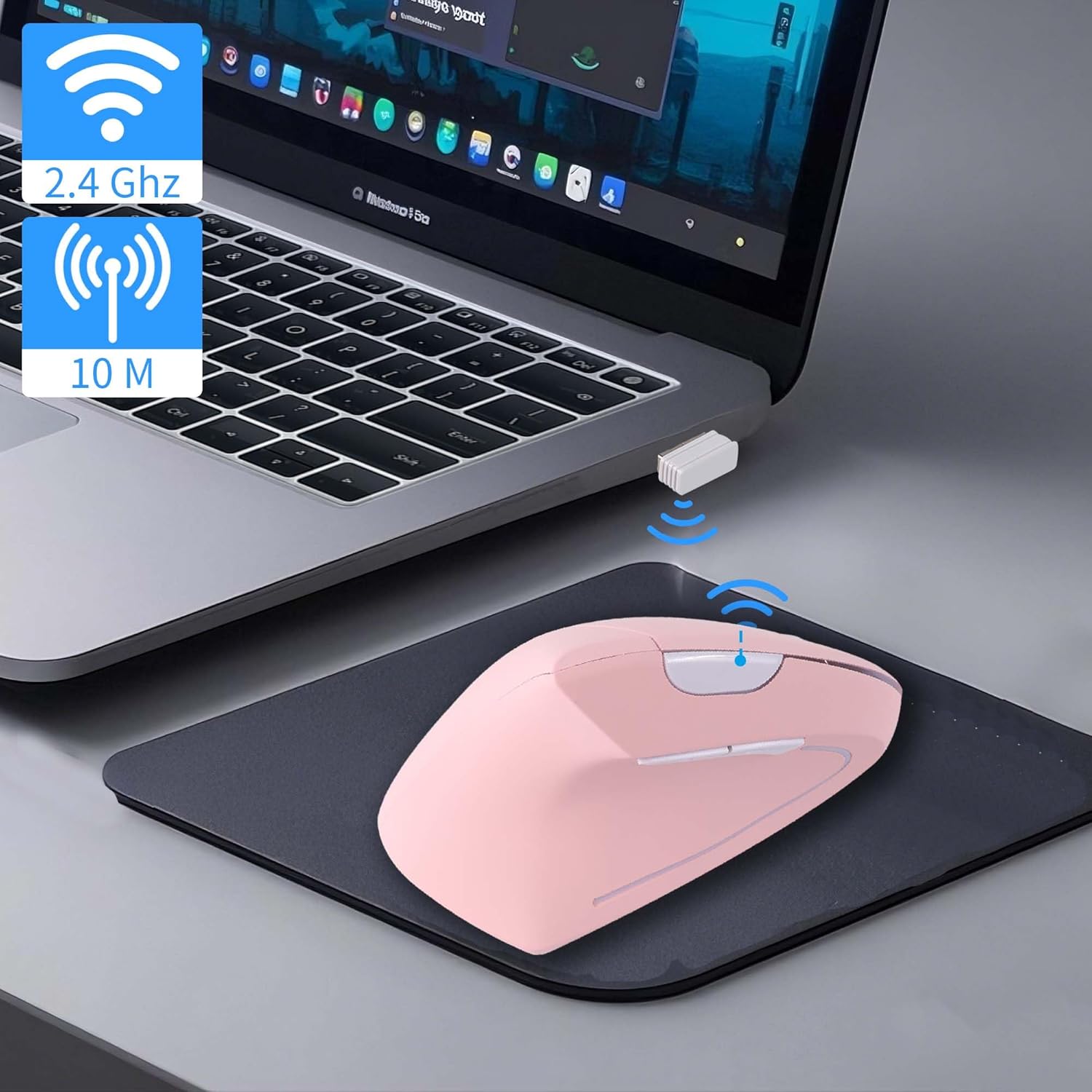 Comfortable feel: Designed to reduce wrist strain, this wireless, silent laptop mouse perfectly fits the natural shape of your palm, making it ideal for extended work, gaming, or multitasking. This USB ergonomic vertical mouse features an ergonomic upright design for a comfortable grip and a premium rubberized surface for a pleasant tactile feel, perfect for working from home.