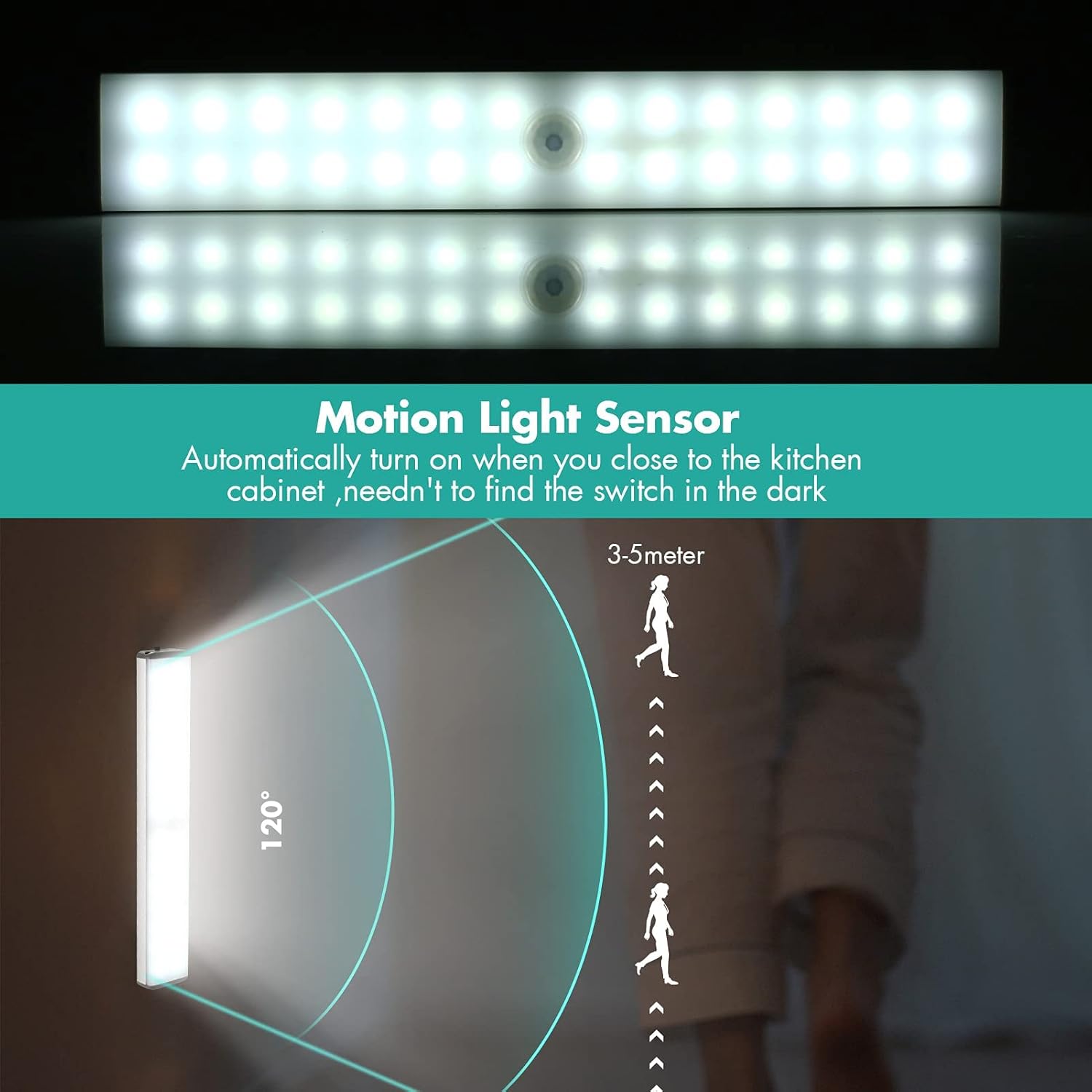 Wireless Under Cupboard Light, 28 LED Motion Sensor Lights USB Under Cabinet Lighting Kitchen Wardrobe Light Night Light body lamp with Magnetic Strip Stick-On battery operated,Closet Hallway,Stairs