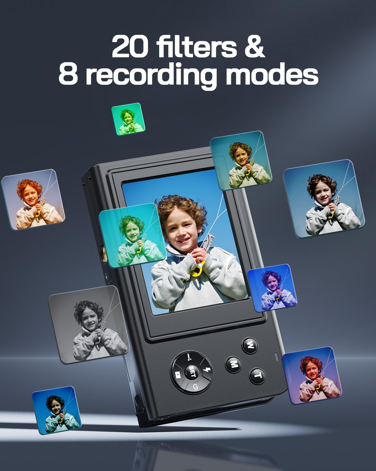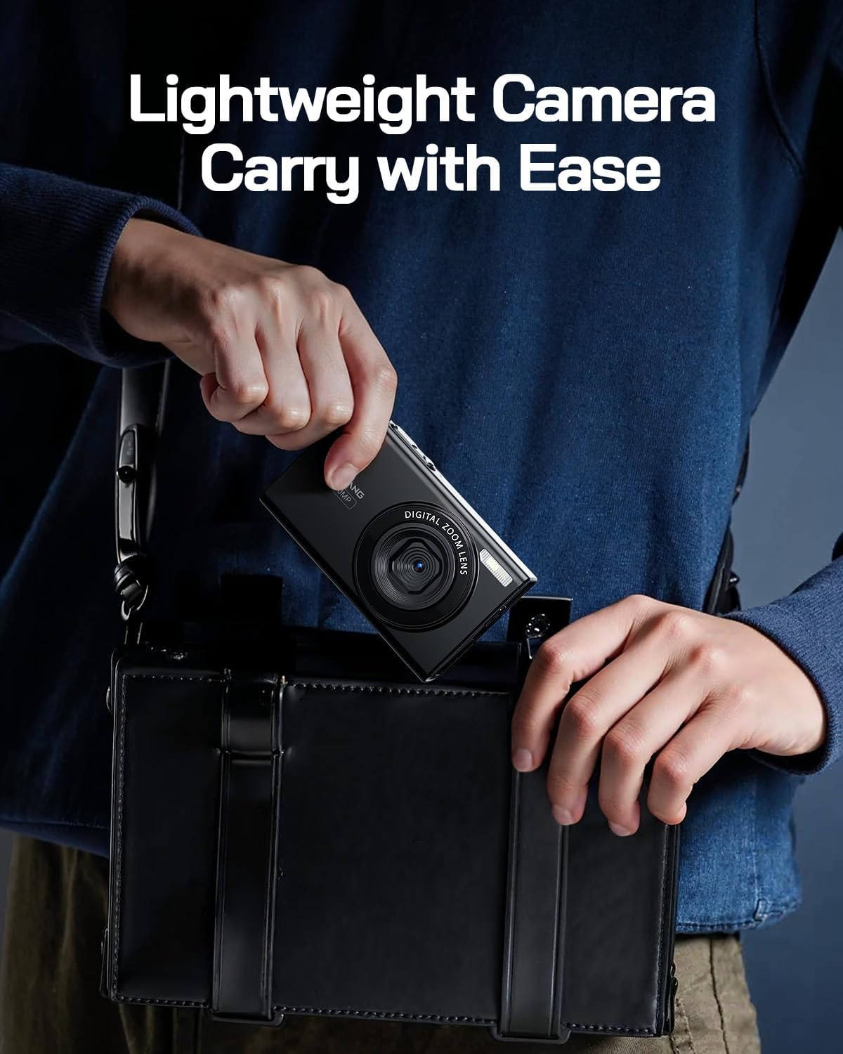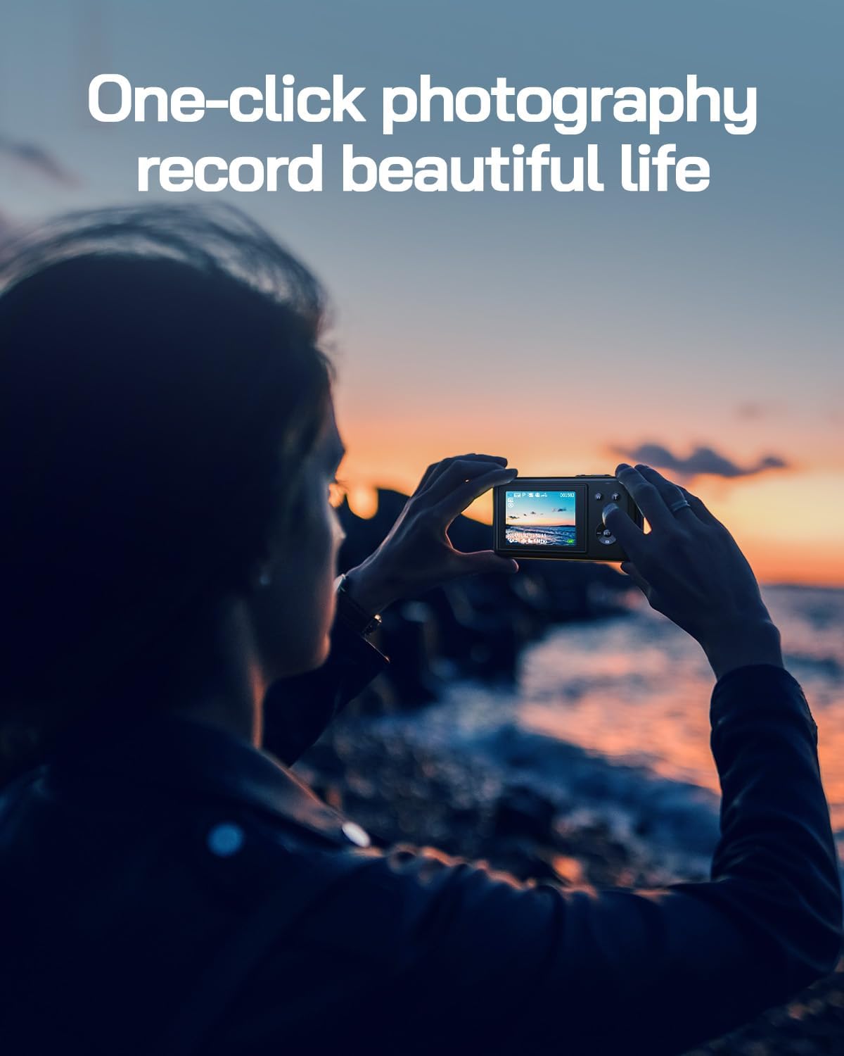 【2.7K digital camera for all ages】Experience the simplicity of 2.7K video and 50MP images, ideal for capturing life moments with family-friendly operation. This 2.7K digital camera is an ideal starting point for kids and teens learning to take photos, but its clear output is also suitable for adults and seniors who appreciate uncomplicated technology