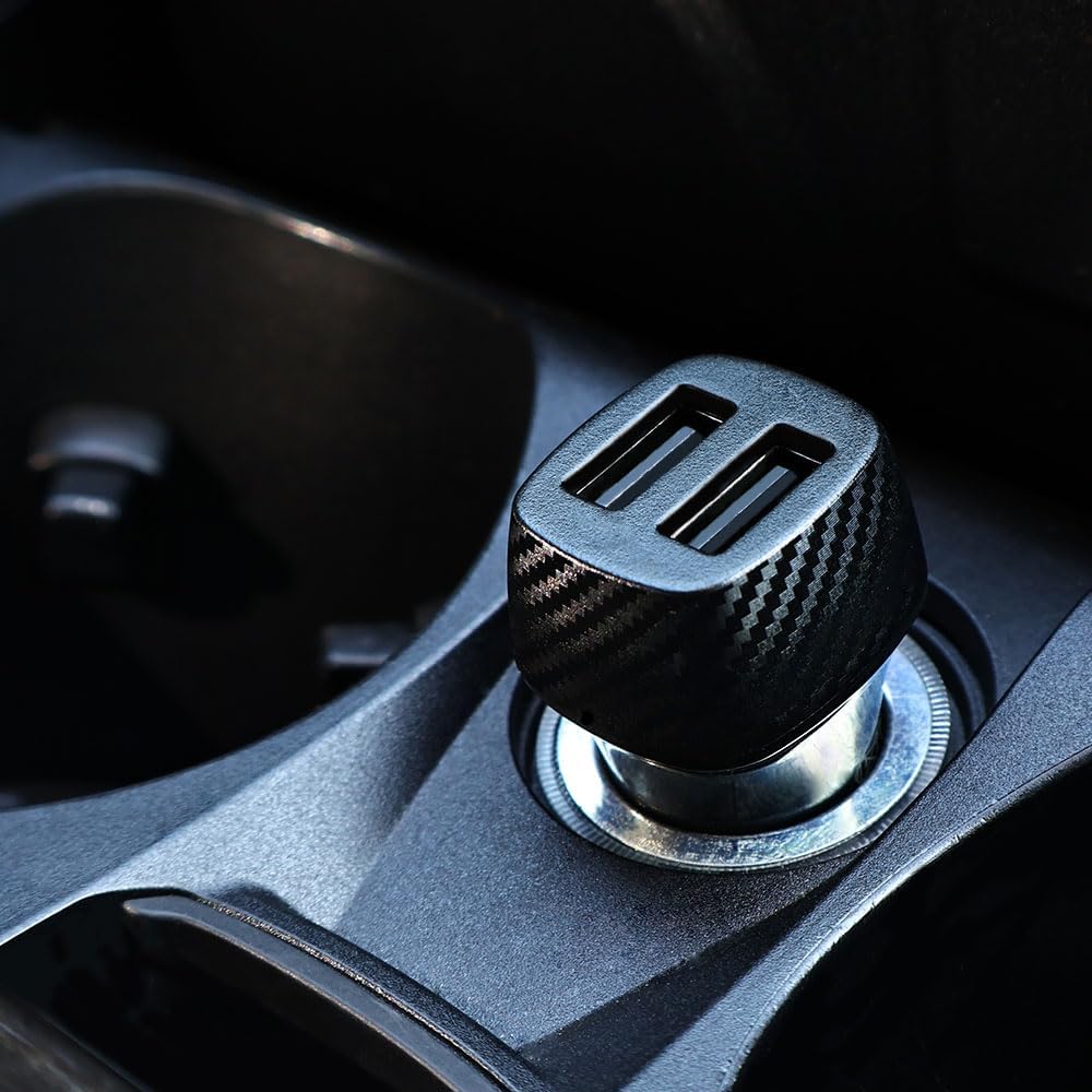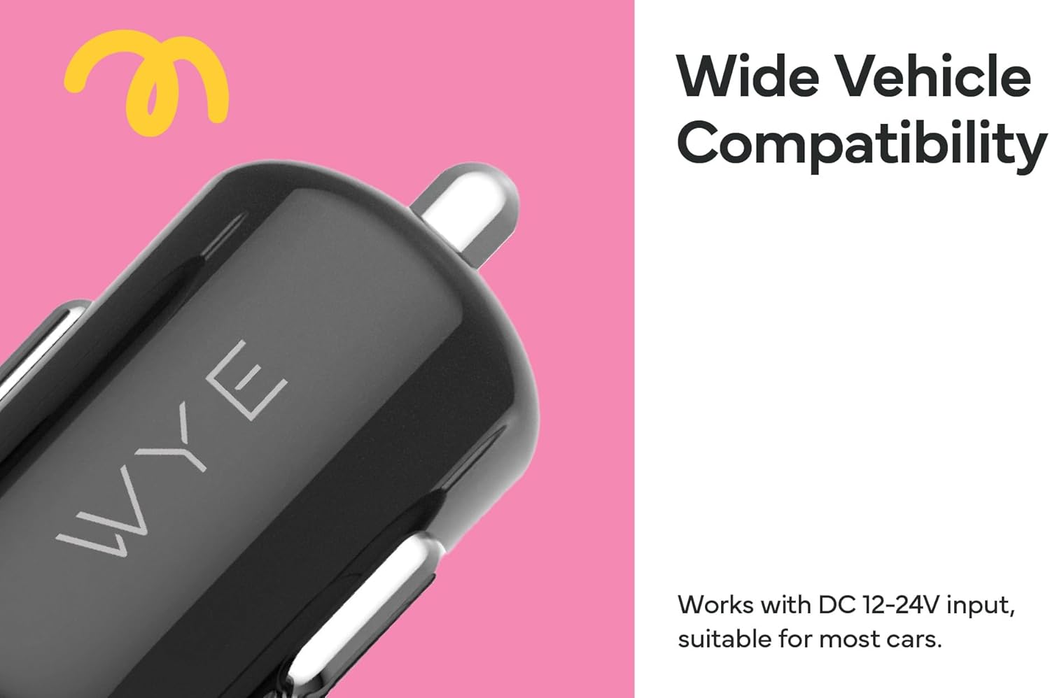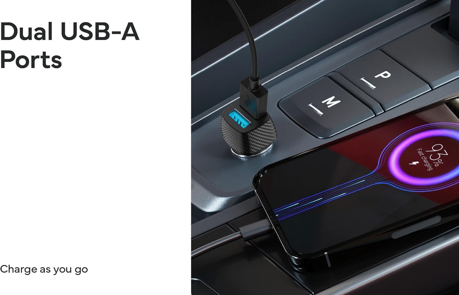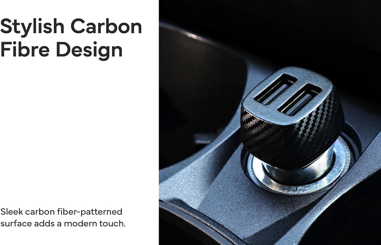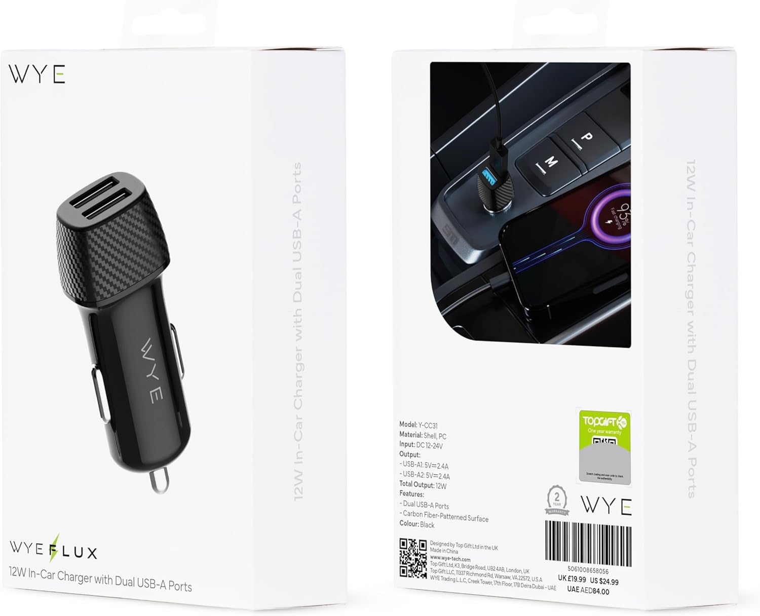 WYE 12W In-Car Charger with Dual USB-A Ports, Compact Fast Charging for iPhone, Android, Tablets, Carbon Fiber Design, Black Buy Now on Amazon (Black)