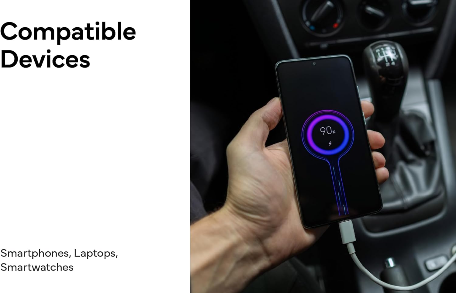 Crafted from durable PC material, the charger is both compact and robust, fitting neatly in your car without adding bulk. Experience the convenience of high-speed charging and the elegance of a stylish design with the In-Car Charger.