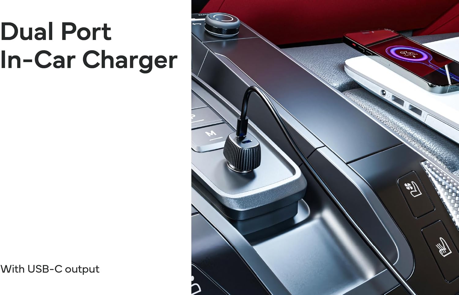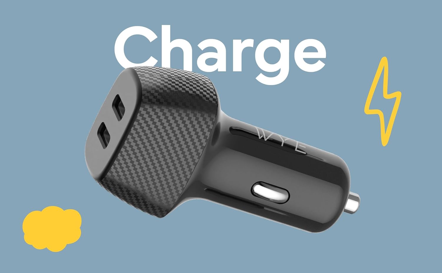 WYE 60W In-Car Charger with Dual USB-C Ports, PPS Technology, Carbon Fiber Design, Fast Charging for iPhone, Samsung, Tablets – Black Buy Now on Amazon (Black)
