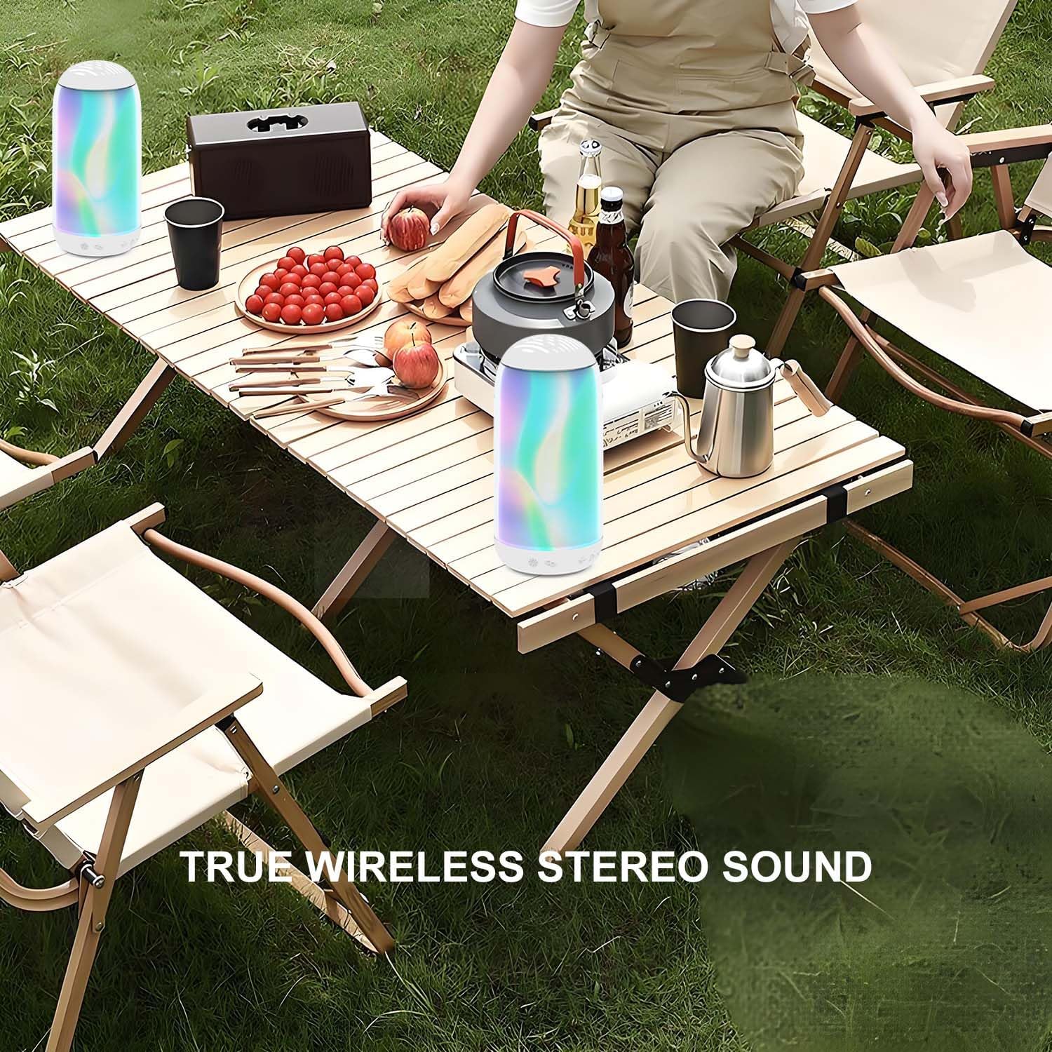 IPX7 dustproof and waterproof:IPX7 waterproof , you no longer need to worry about the speaker getting wet on the beach or swimming pool, even if it rains in your outdoor camping.