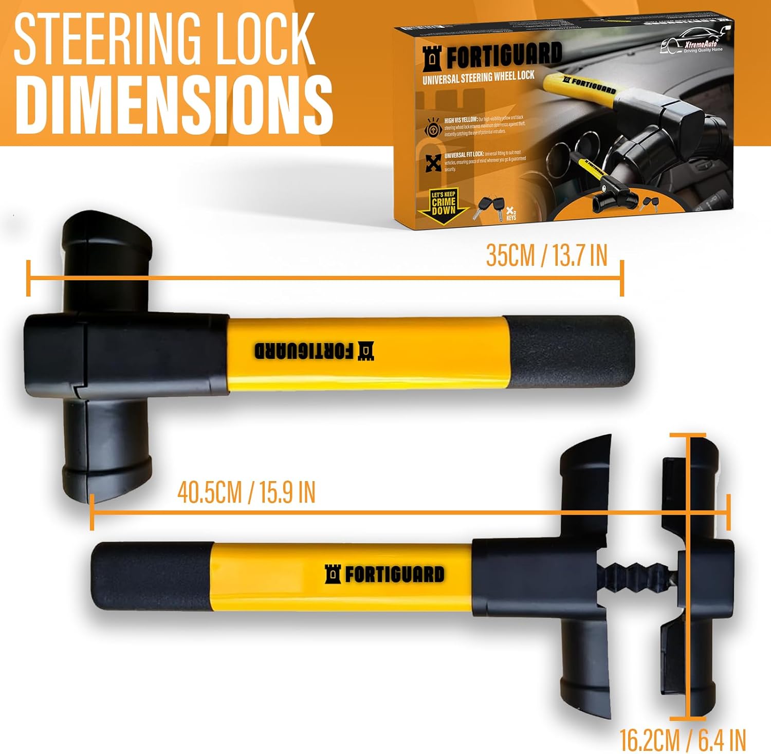 Xtremeauto FORTIGUARD Steering Wheel Lock – Heavy Duty Anti-Theft Car Lock Device, Universal Fit with Easy Install & High Visibility – Secure Cross-Key Design, Virtually Pickproof & Quick Install