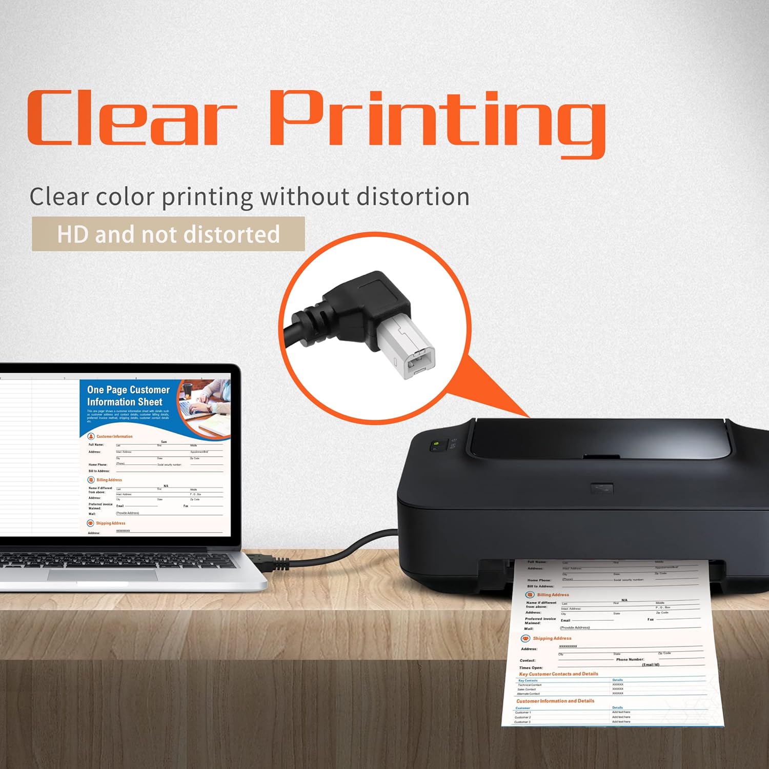 2. USB to printer adapter cable code compatible: USB 1.0, 1.1, 2.0; fully compatible with PC and Mac.