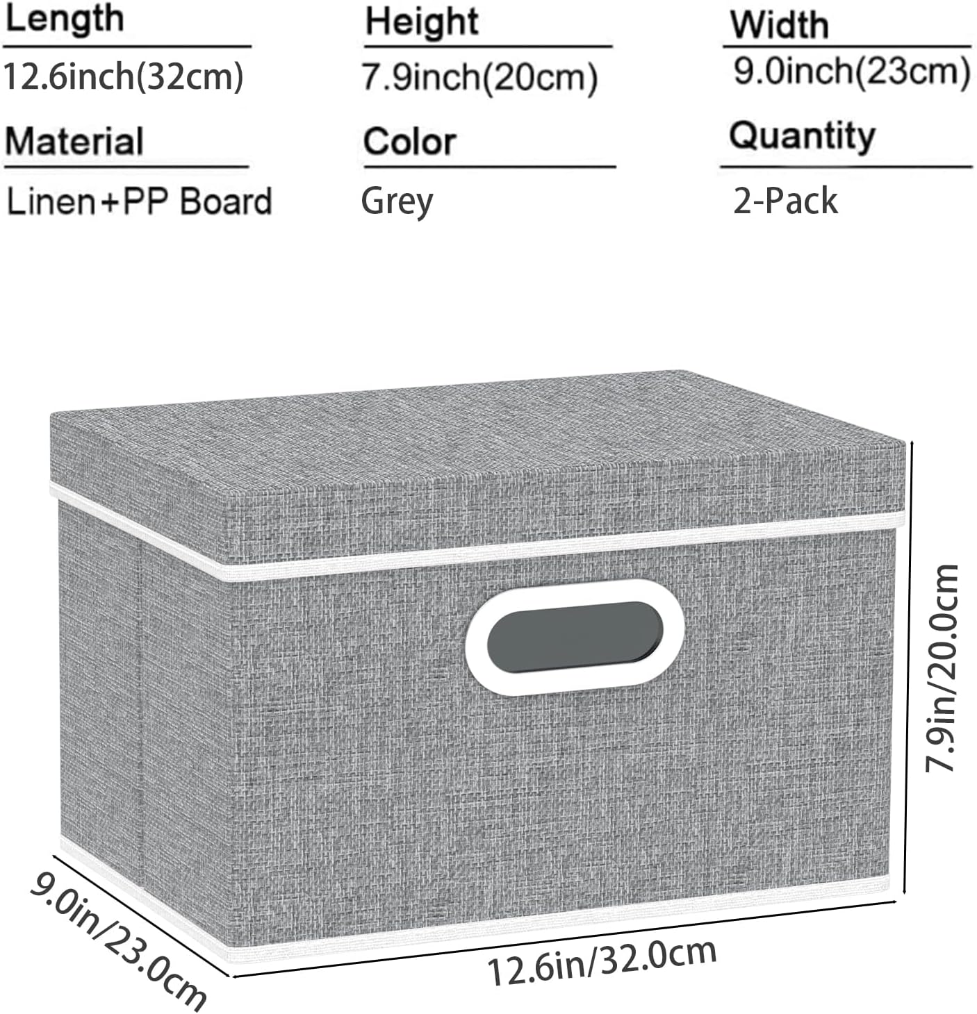 Yawinhe Storage Box with Lids 2 Pack, Collapsible Clothing Shelf Basket, for Organizing Clothes, 32x23x20cm, Grey, SNK023G-2