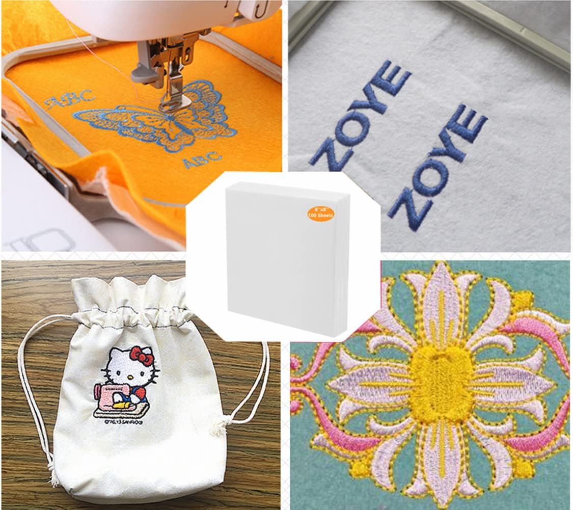 YEQIN Cut Away Machine Embroidery Stabilizer Backing 8″x8″ – 100 Precut Sheets – Medium Weight 2.5 Ounce – Fits 4×4 and 6×6 Hoops