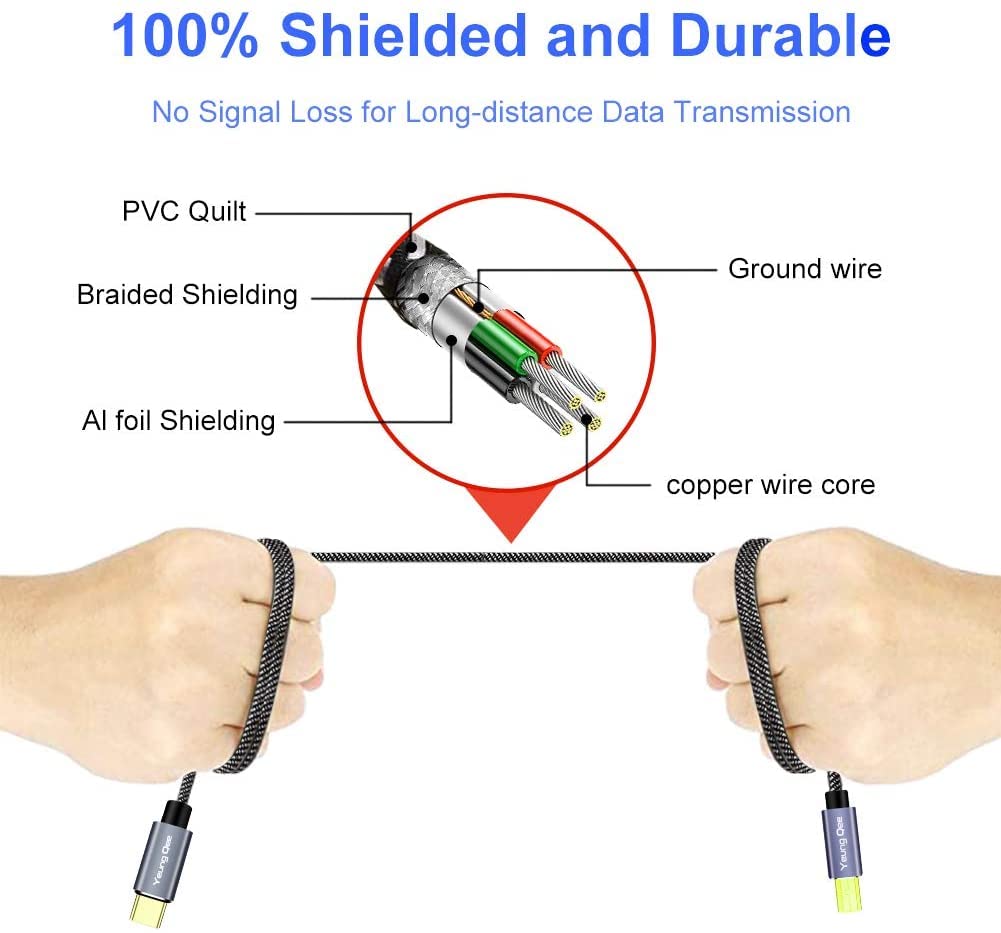Premium Quality: Triple shielding of tinned copper, aluminum foil and ground wire protect EMI from other electric equipments and ensure stable and fast data transferring without noise or signal loss. Molded strain relief and TPE jacket make the cable bend freely and more durable for a longer lifespan.