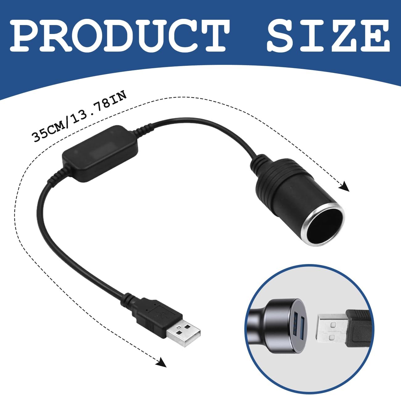 【Convenience】 With an overall length of approximately 35 cm (13.8 inches), there is no need for a complicated installation process or tools. Simply plug the connector into your car’s cigarette lighter socket and the indicator light will illuminate, allowing the user to visualize the connector’s operating status.