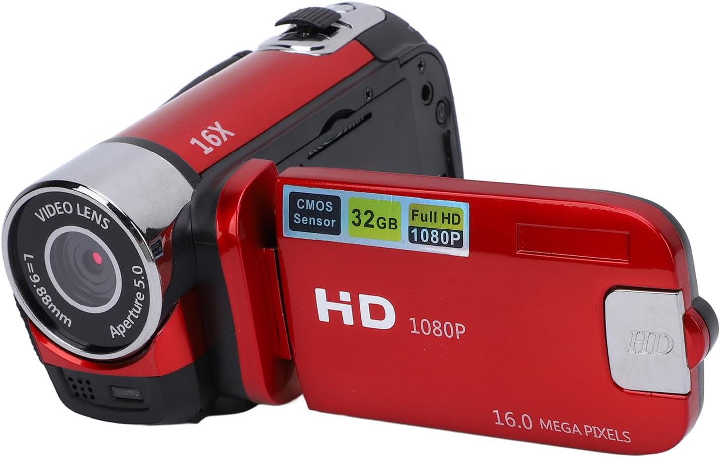 Yunir Video Camera Camcorder Digital Camera Recorder 1080P with 2.4 Inch Color Screen, 16MP 16X Zoom Anti Shake Camcorder Built-in Battery (Red)