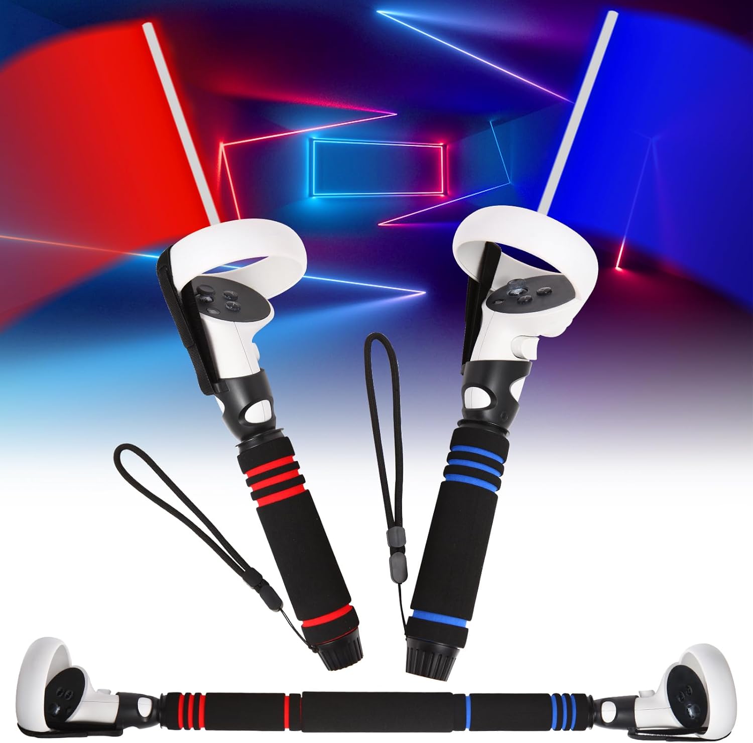 Enhance Experience: Multipurpose VR Dual/Long Stick Handle Extension Grips for Quest 2 Controllers Playing BeatSaber Games,When you hold it, you will feel like your actually holding the sabers and get a better experience while playing Beat Saber, Supernatural,First Person Tennis,Vader Immortal, Gorilla Tag,etc.