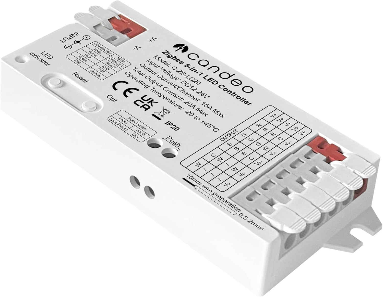 Works ok but you have to tinker a bit to make it function with smart things. First you need to install the proprietary drivers on your hub from the candeo support website (it’s not written anywhere in the instructions). Then only the RBG-CCT mode works. As soon as you press the opt button to change mode, the device disconnects from the hub and there is no way to make it work again unless you do a factory reset, which also resets the operation mode. So basically 5 in 1 but you can only use the default mode. Works for me but may be a downside for others.