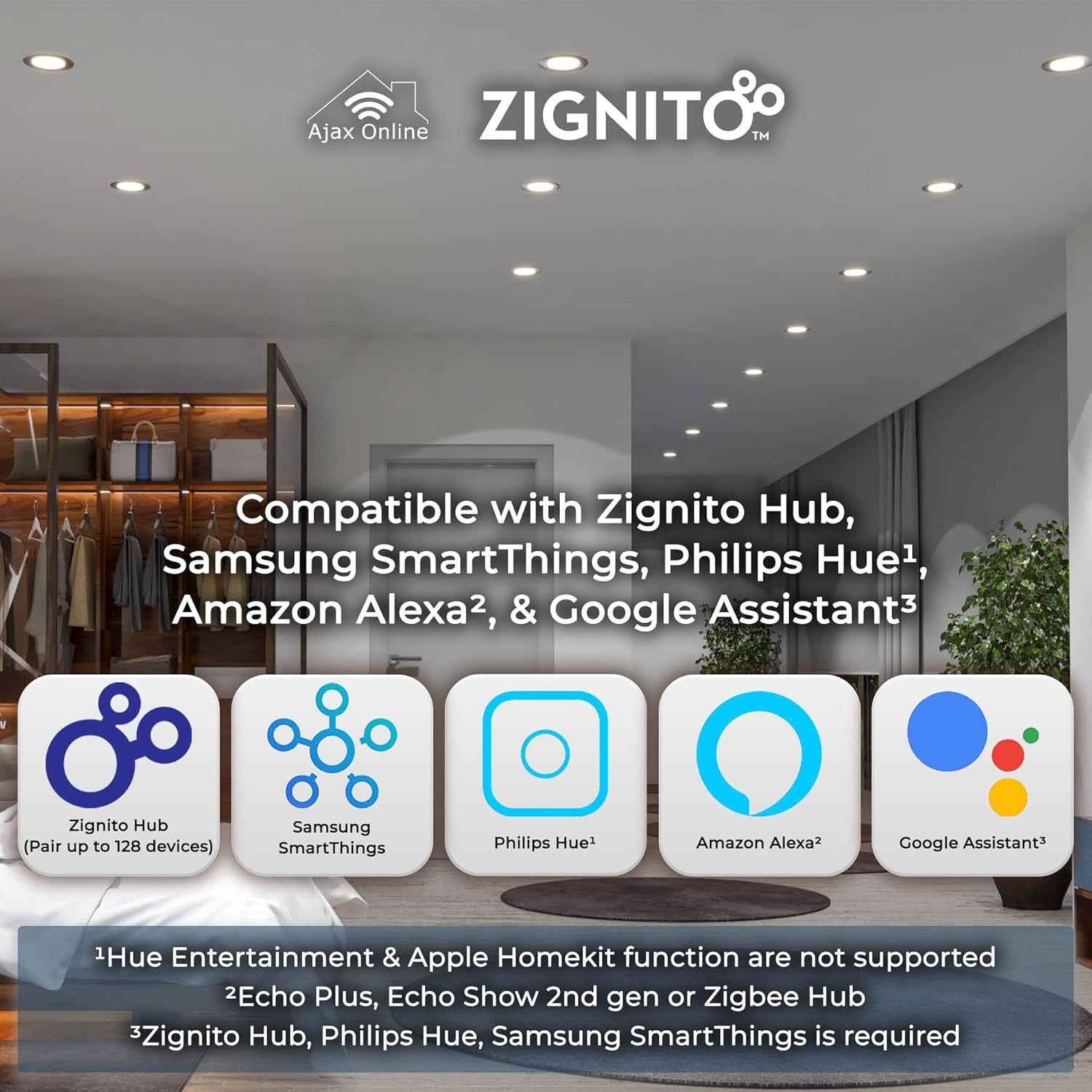 🛡️ Security Hub Compatible: Pairs with the Zignito Hub, enhancing your smart home with integrated security features.